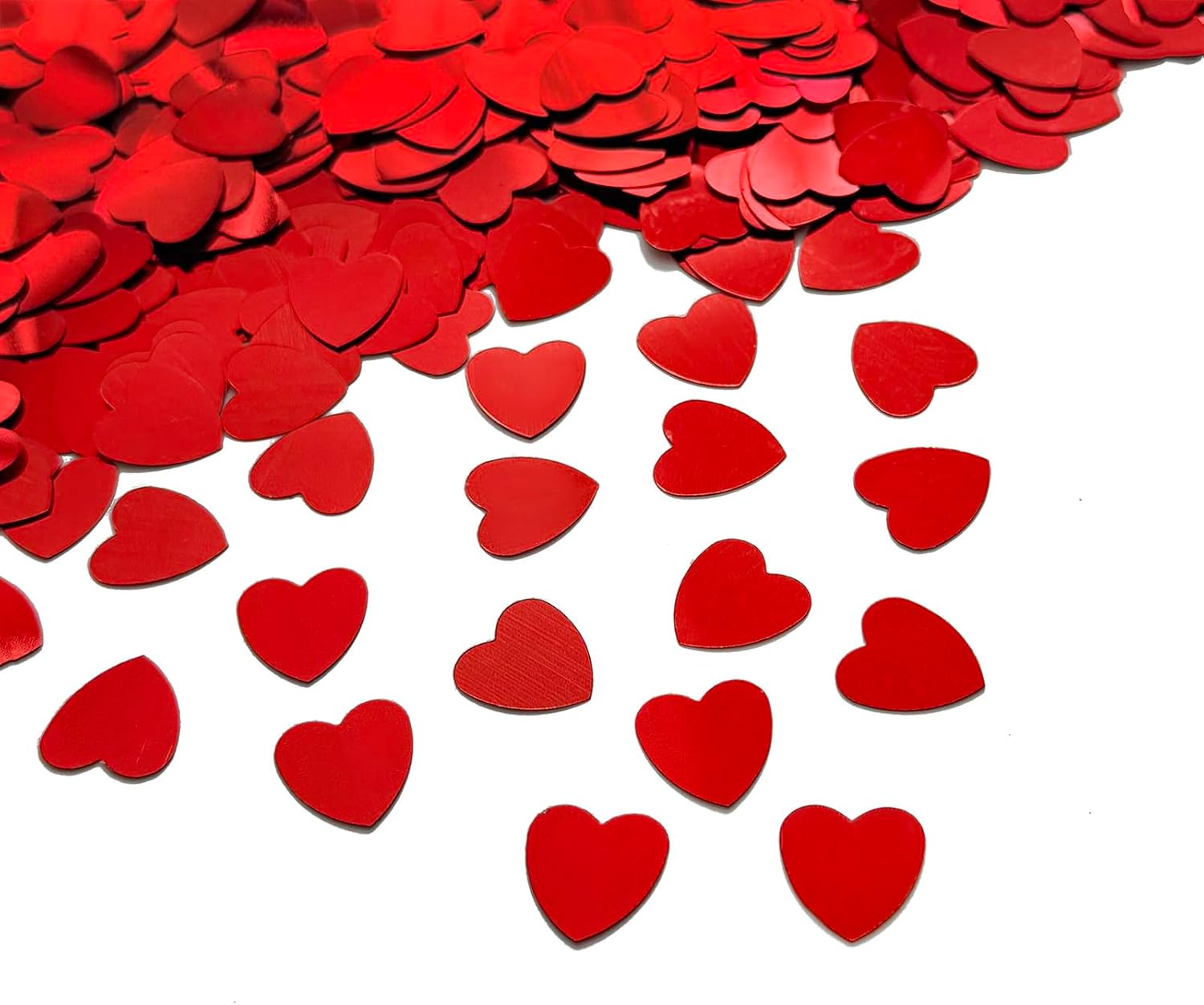 Red Heart Confetti – Shiny Foil Heart Table Scatter for Romantic Party Decorations, Wedding, Valentine's Day, Anniversary, Proposal & Love Celebrations Party Supplies 1200PCS