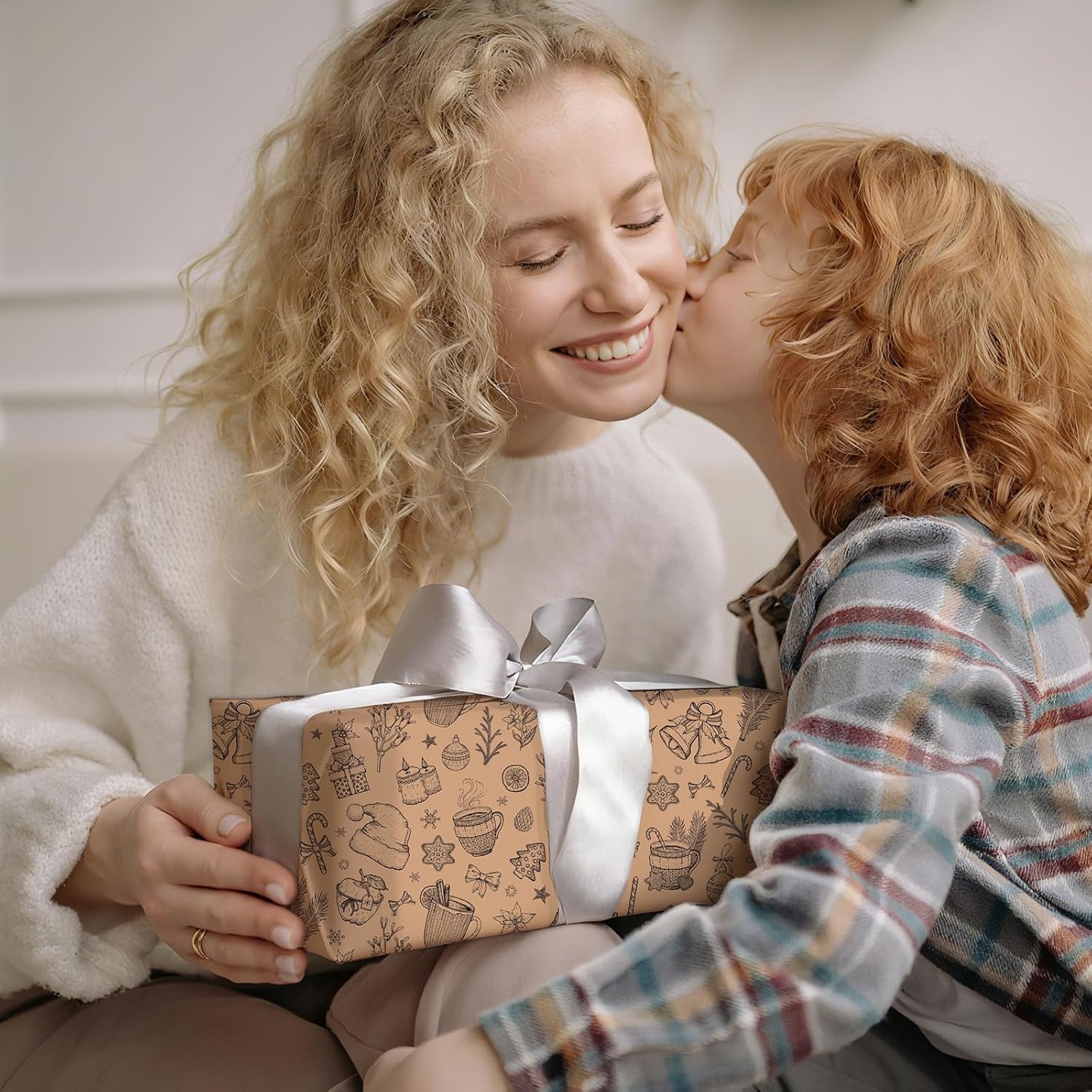 • Versatile for All Your Christmas Magic: Perfectly wraps gifts for loved ones. Also ideal for creative DIY projects like festive table runners, charming gift tags, or unique tree ornaments. The classic kraft and sketch design complements any cozy winter celebration theme.