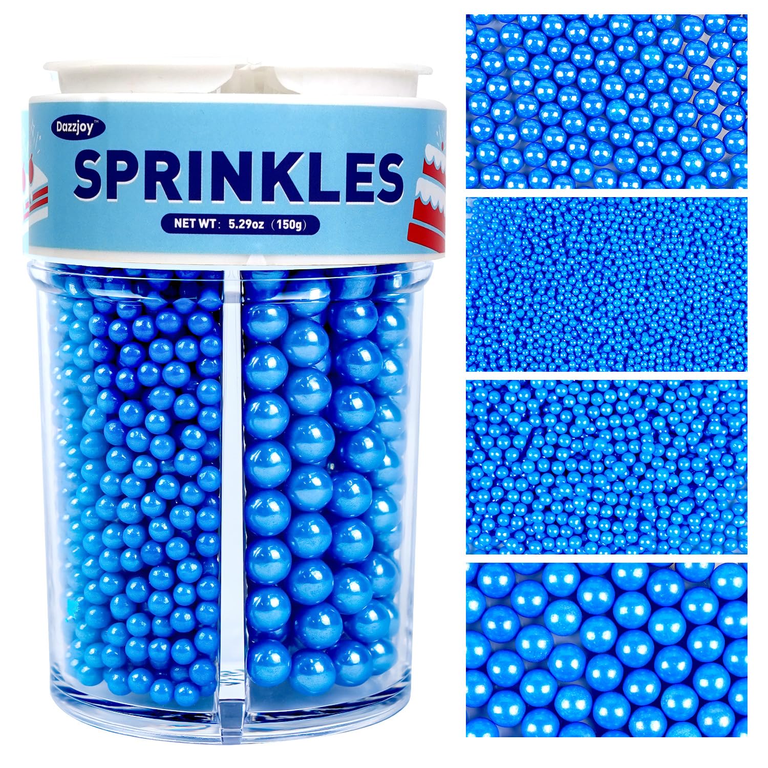 Dazzjoy Edible Blue Ball Pearl Sugar Sprinkles, 150g/5.29oz, Blue Sprinkles for Cake Decorating, Cake Decoration & Cupcake Topper