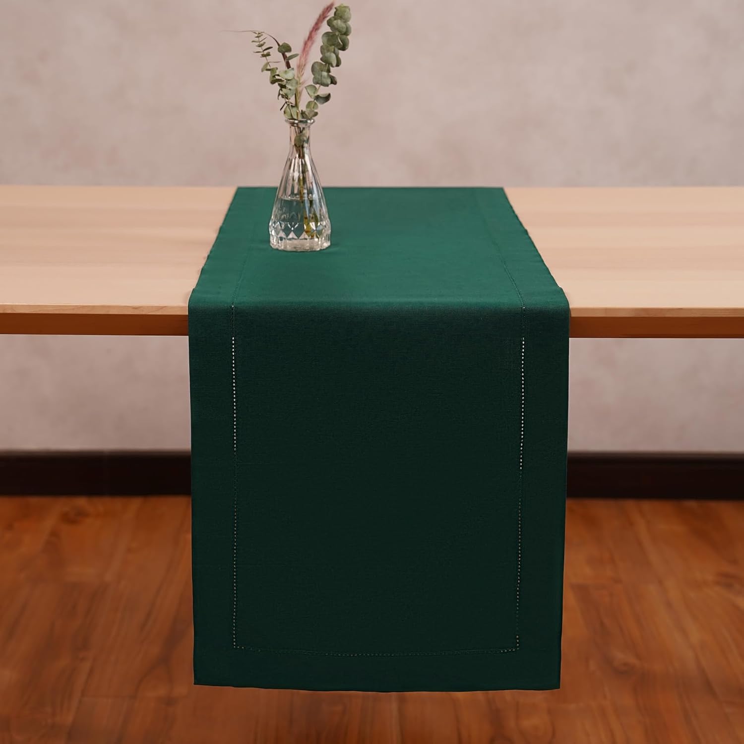 • Cotton Linen Hemstitch Green Table Runner 14 X 48 Inch