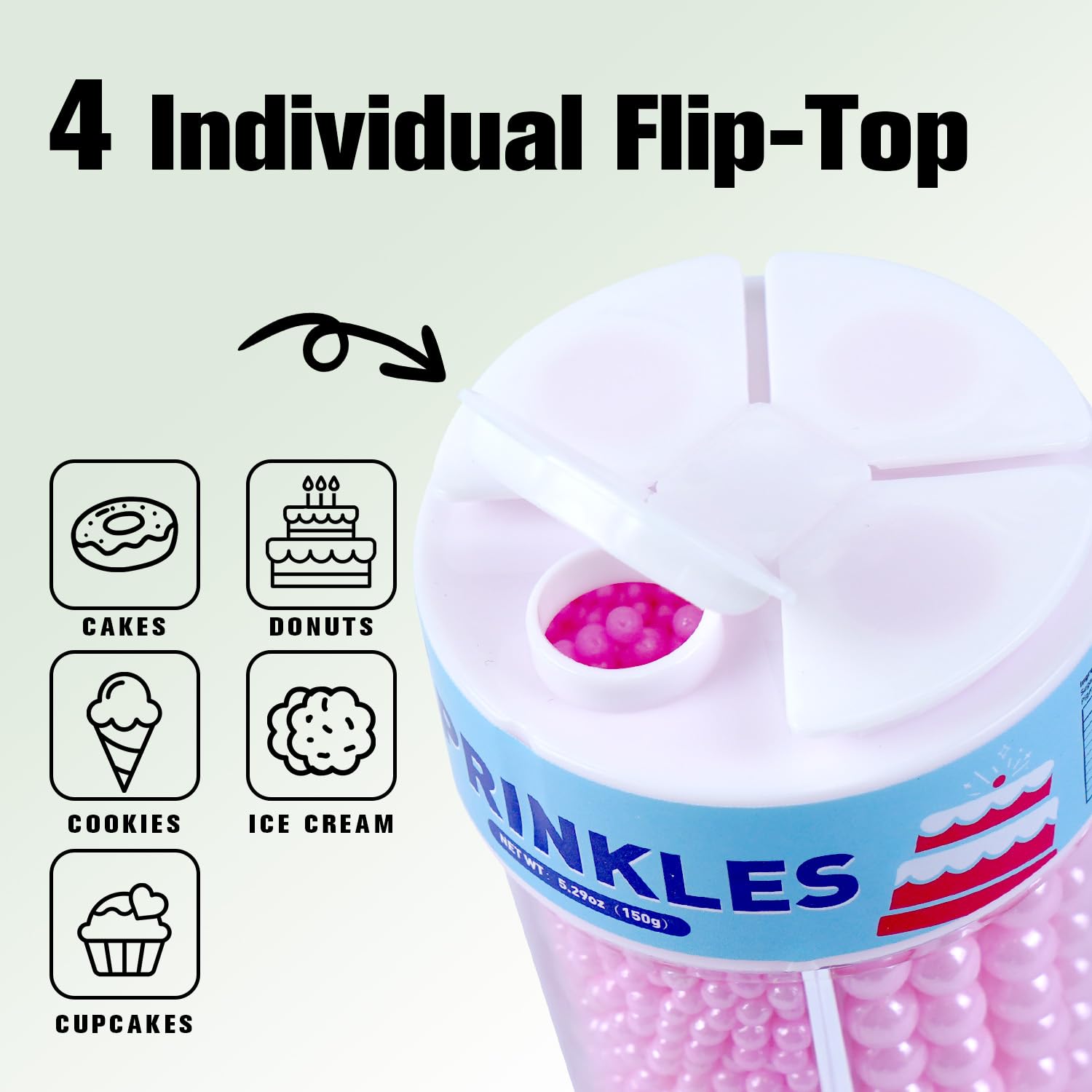 Dazzjoy Edible Pink Pearls Sugar Sprinkles, 150g/5.29oz, Pink Pearl Sprinkles for Cake Decorating, Cake Decoration & Cupcake Topper, Valentines Supplies