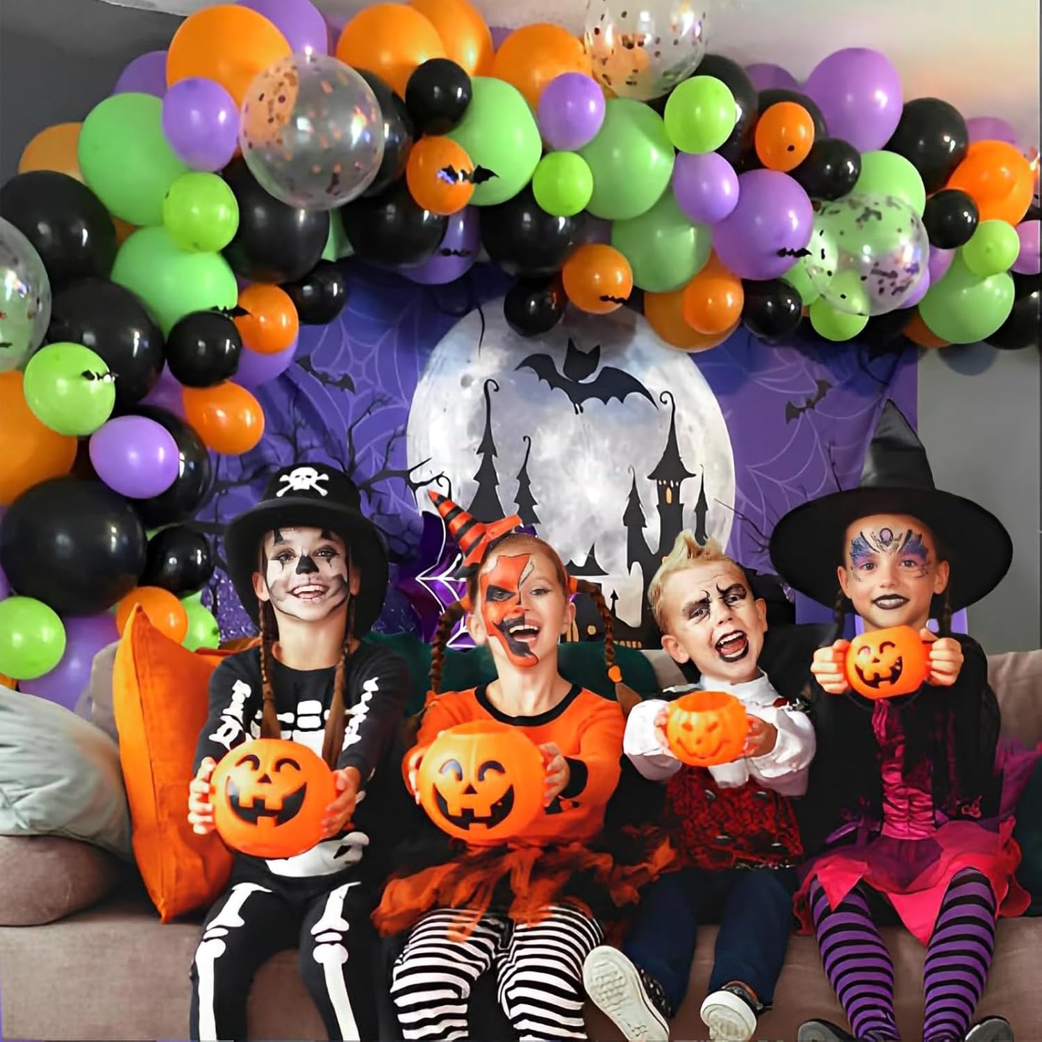 • Package Include: Our orange and black balloons kit includes 10 pcs green balloons, 10 pcs orange balloons, 10 pcs black balloons, 10 pcs purple balloons, 10 pcs purple, black mix orange confetti balloons, 1 orange ribbon and 1 black ribbon