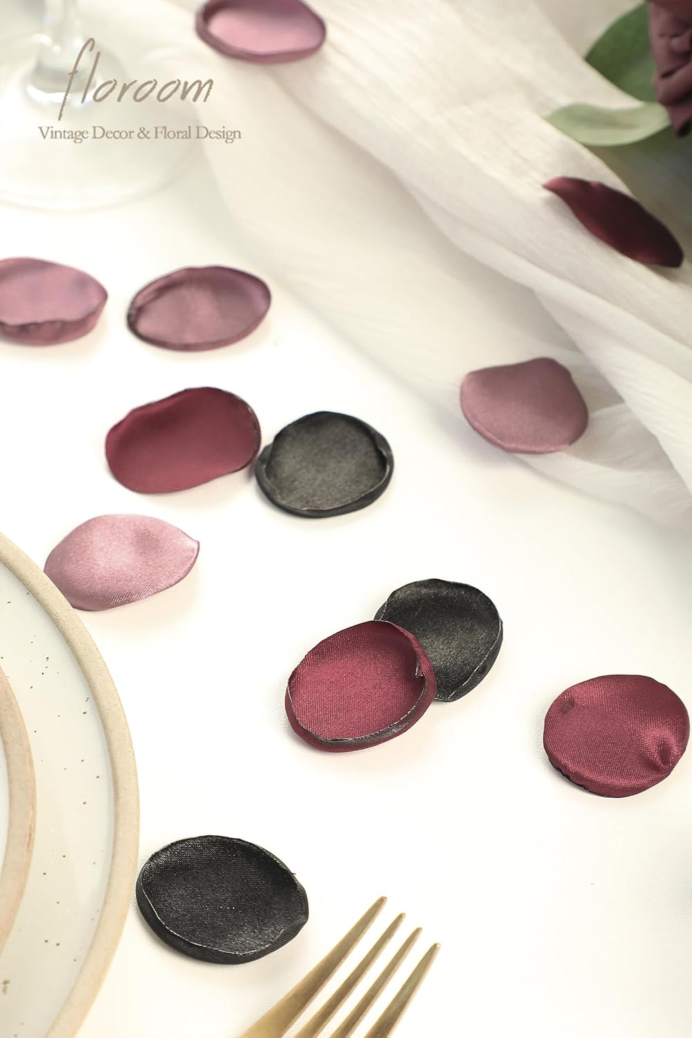 • ❤️Color Details: Black/ Burgundy/ Mauve. This color combo is designed by Floroom Studio. We also offer solid color petal packs for free combination, enabling you to craft specific accessories matching your wedding decoration.