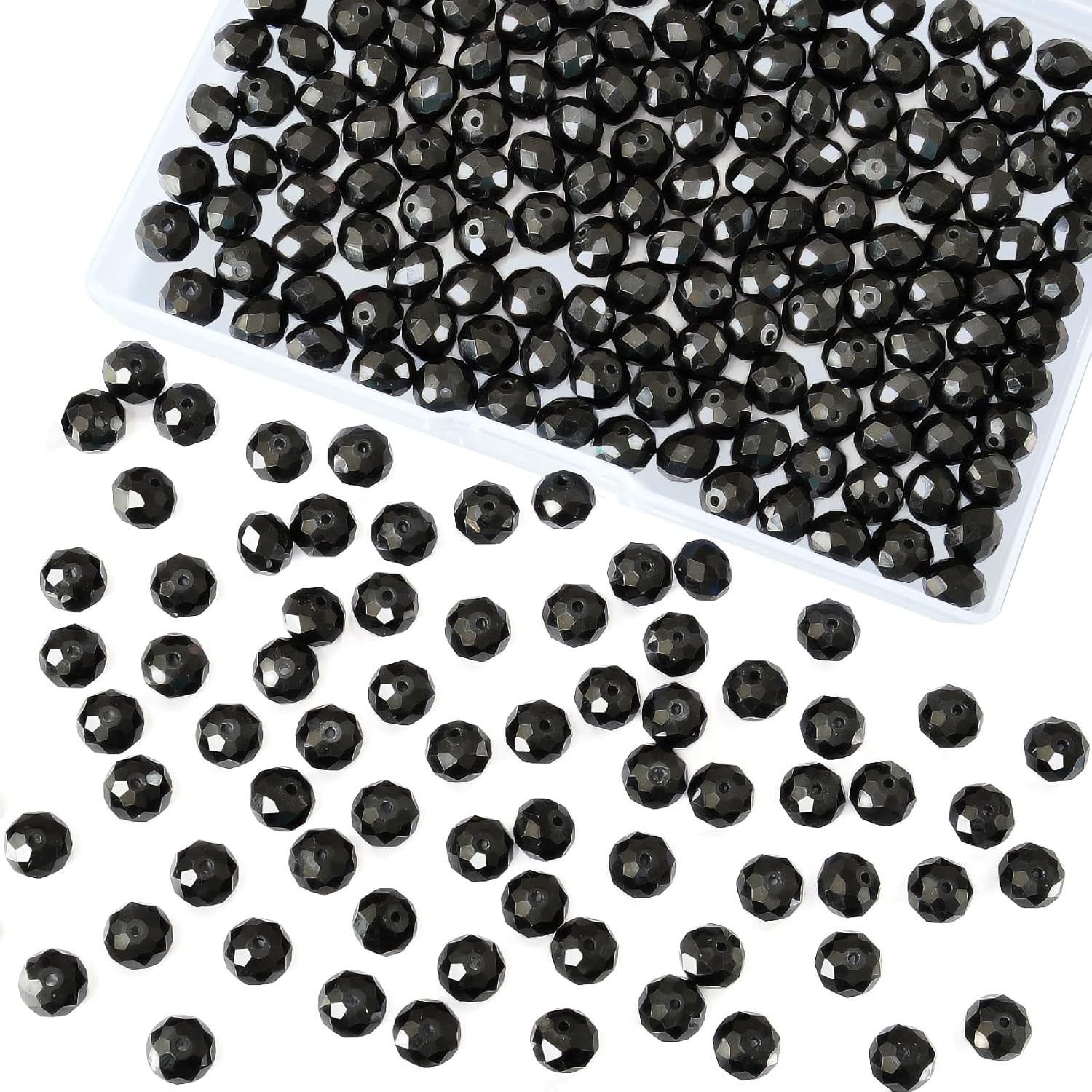 220 Pcs 10mm Round Crystal Glass Beads for DIY Jewelry, Ideal for Bracelets, Necklaces, Pendants, and Handmade Craft Projects(Black)