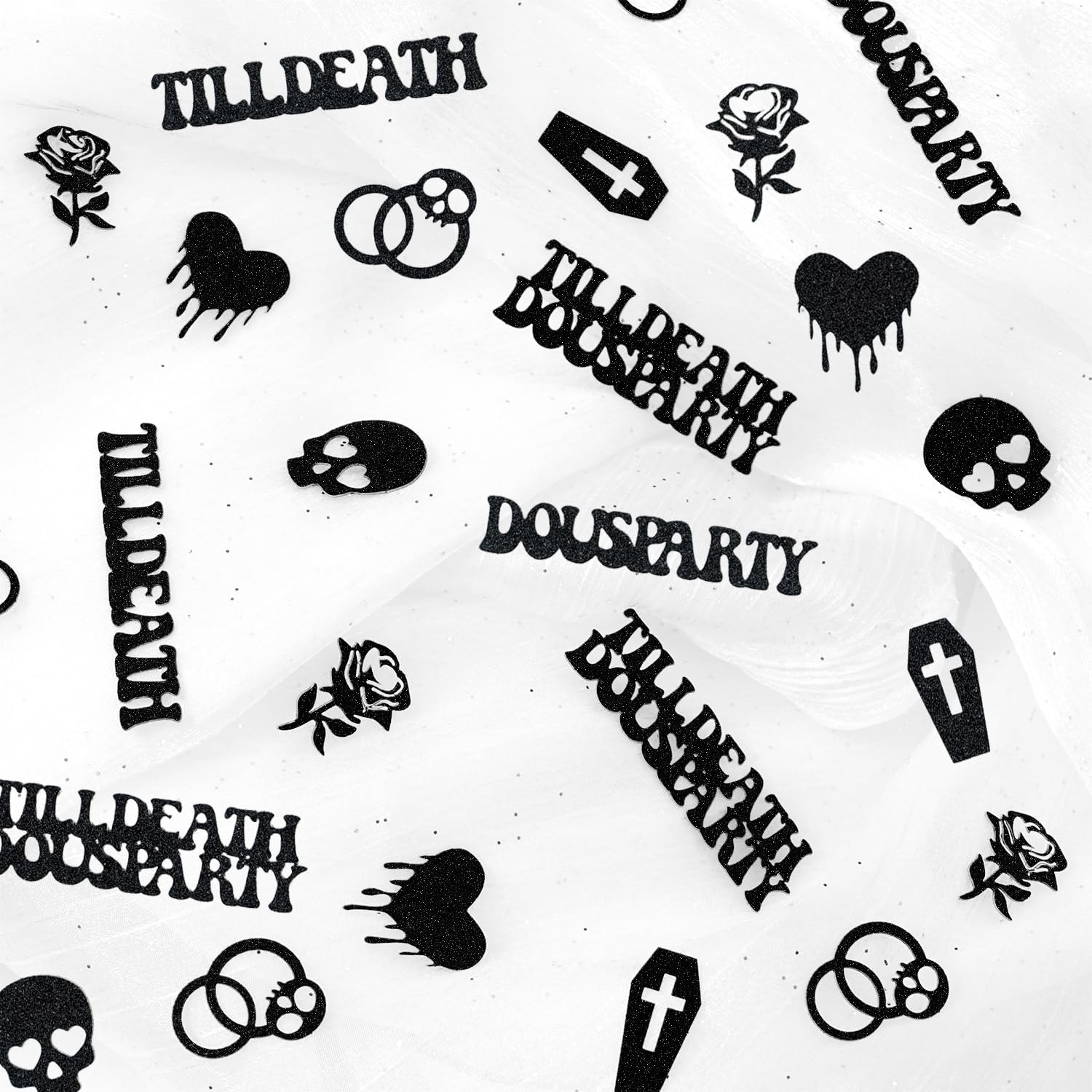 • UNIQUE DESIGN: This super cool confetti features "TILL DEATH" Letters, Skull with Diamond Ring, Blood Drop Heart, Gothic Rose, Ornate Skull, full of hauntingly romantic ambiance