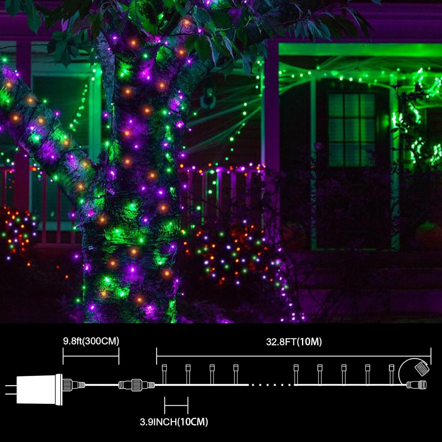 • Halloween Decorations String Lights: 33FT Christmas string lights with 100 Purple ,Green ,Orange LED bulbs. Each Christmas lights has end-to-end connection, you can connect up to 8 sets together to illuminate a wider range.