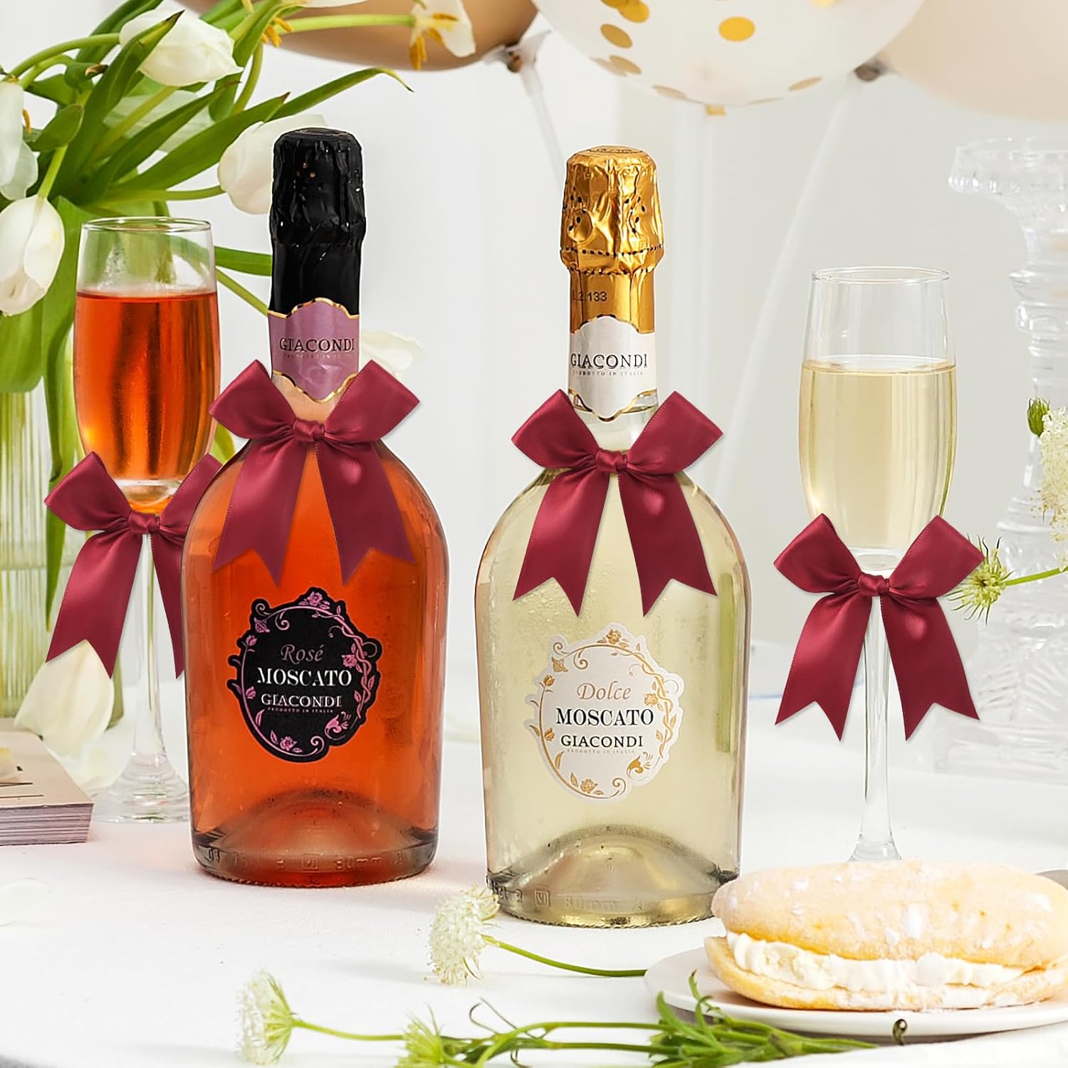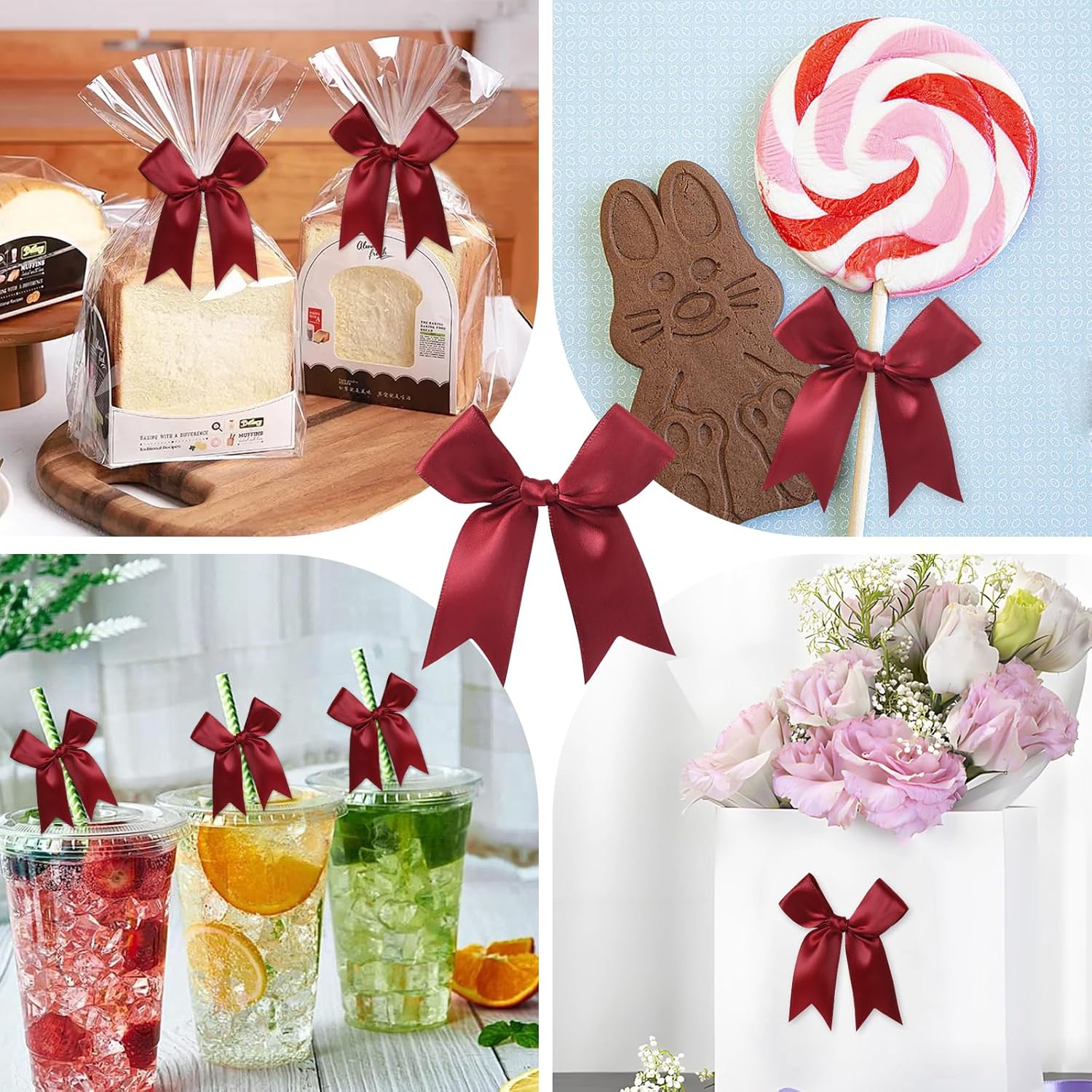 Feluwi Burgundy Gift Wrap Bows (50 Pcs) - 3.3 Inch Elegant Plastic-Free Bows for Christmas Gifts, Birthday Presents, Wedding Friendly Party Supplies, Baby Shower, Gift Bags Decorative Accessories