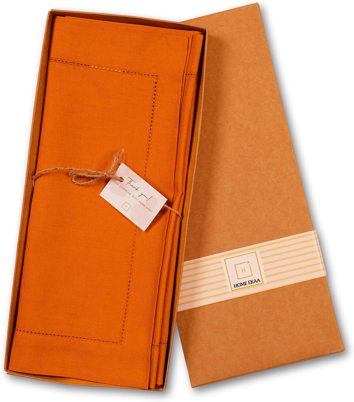 • Cotton Linen Hemstitch Pumpkin Table Runner 14 X 36 Inch