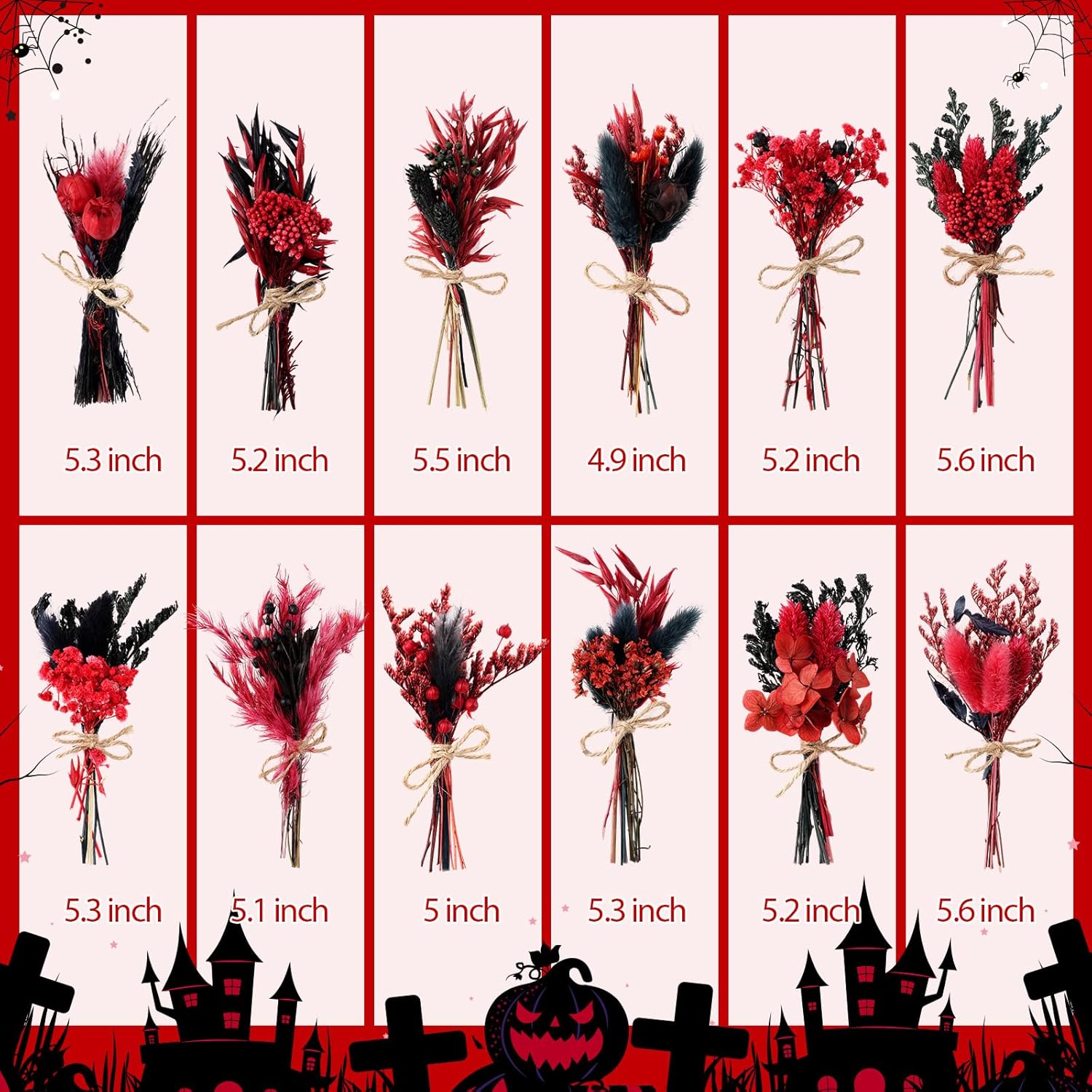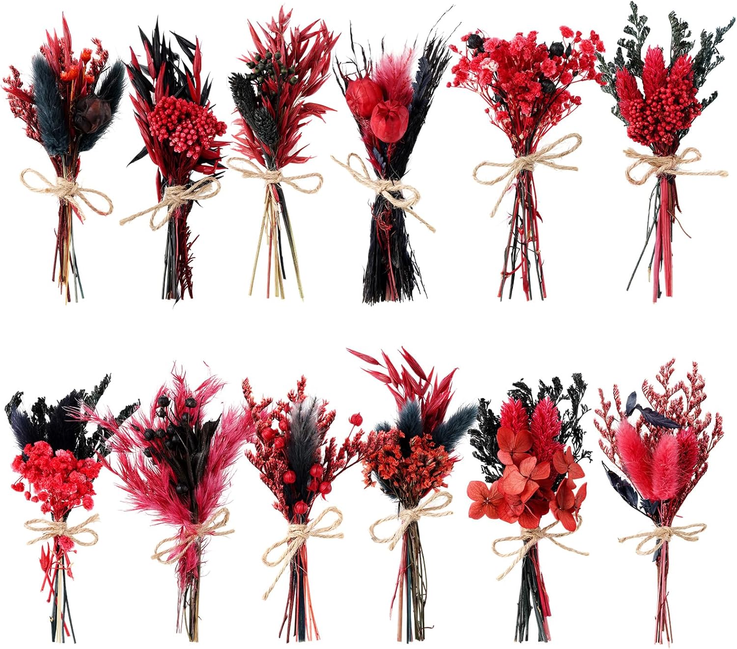 10/12/24/36 Pack Mini Dried Flowers for Vase Wedding Various Mini Bouquet Dried Small Wildflowers Natural Flowers Bulk for Crafts DIY Decor (12, Halloween Color3)