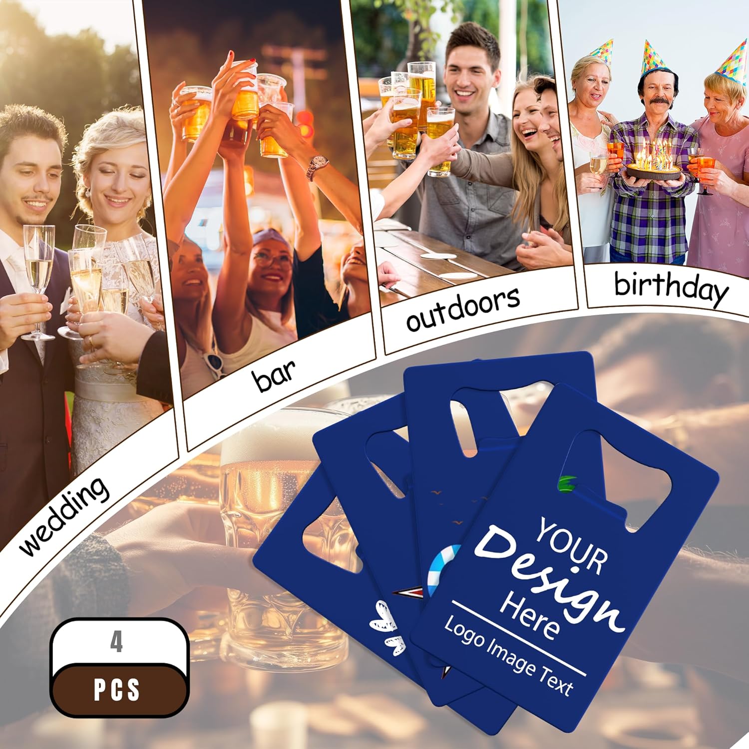 4-100 Pcs Personalized Bottle Opener, Custom Stainless Steel Credit Card Bottle Opener, Full Color Print for 6 Color, Design Your Text Logo for Bar, Wedding, Anniversaries, Party (Blue)