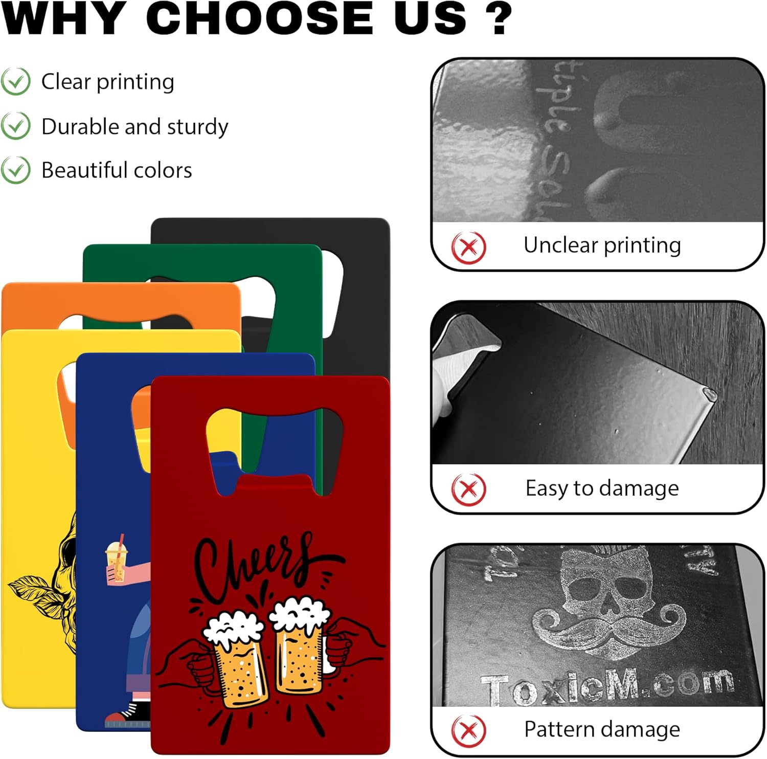 • Versatile Usage: Use UV color printing technology to print your Name/LOGO/Text on the bottle opener, Good for Wedding Favors,Events gifts, Brewery, Bar, Party, Restaurant.