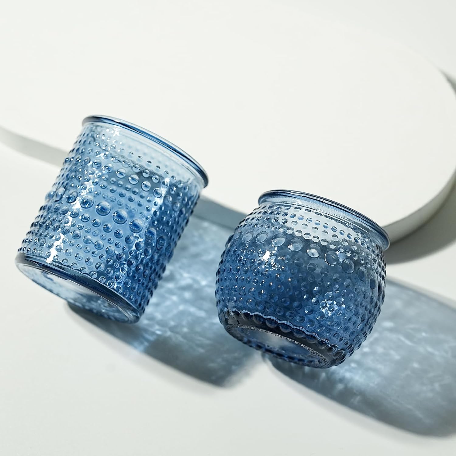 • Captivating Light Play: The blue glass paired with dot decorations creates a magical effect when lit, votive canlde holders casting soft blue tones and intricate patterns. Transform any room into a serene retreat with their gentle, inviting glow