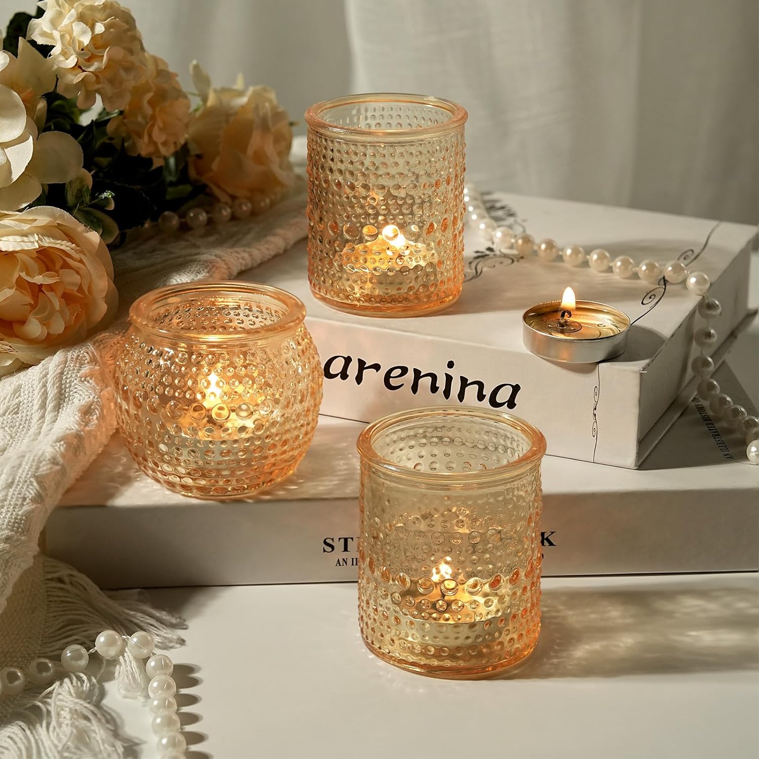 • Luxurious Gold Votive Candle Holders: Elevate your decor with these opulent gold candle holders, designed to bring warmth, richness, and a touch of glamour to any space. Their metallic finish instantly adds a sense of luxury and celebration