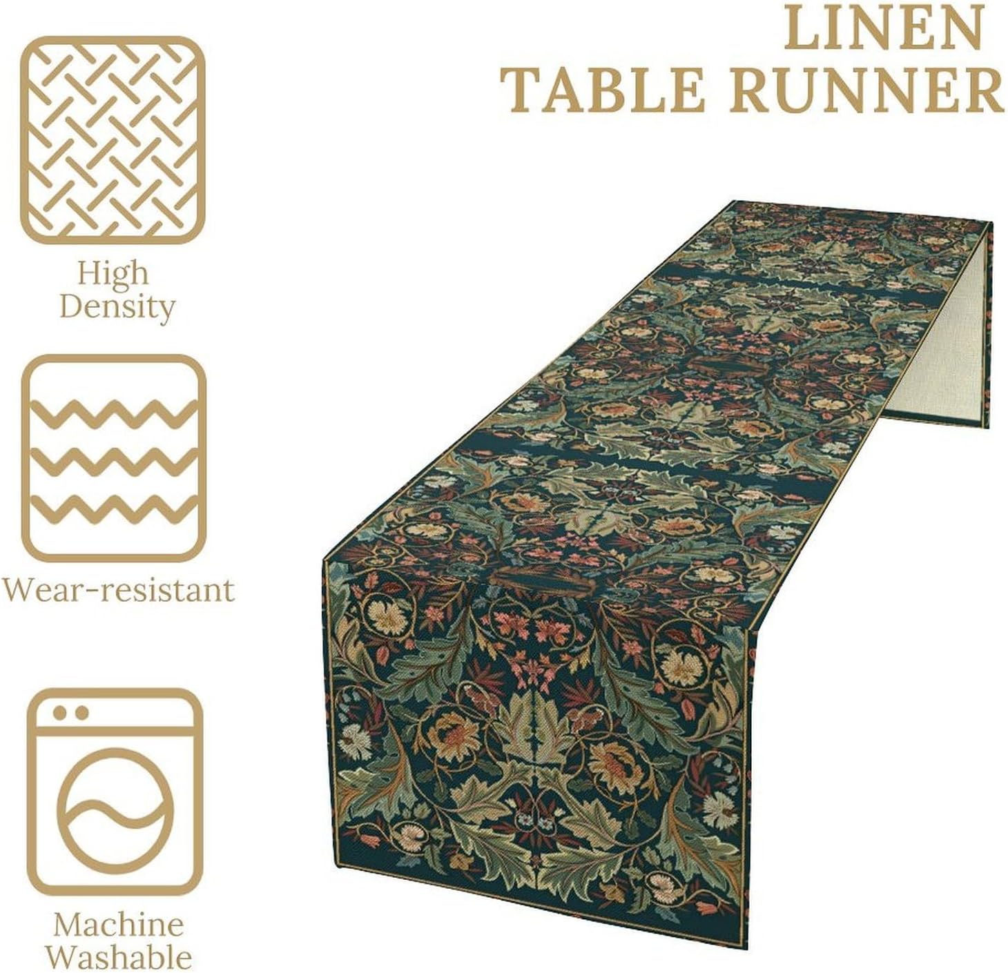 Green Morris Floral Table Runner, Boho Rustic Country Farmhouse Teal Red Rose Pattern for Home Kitchen Table Decor Dining Coffee Room Party Decor 13x36in