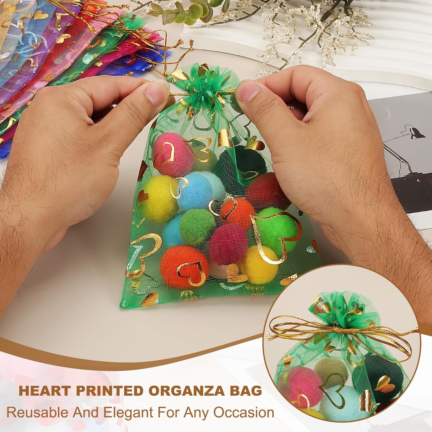 • Application: Sheer Heart Printed Organza Bags add a touch of charm to any gift or favor. Perfect for weddings, parties, company, church, hotels, stores to wrap favor gifts, and retail displays. Pack presents for Valentine's Day, Mother's Day, festivals, and various gifts