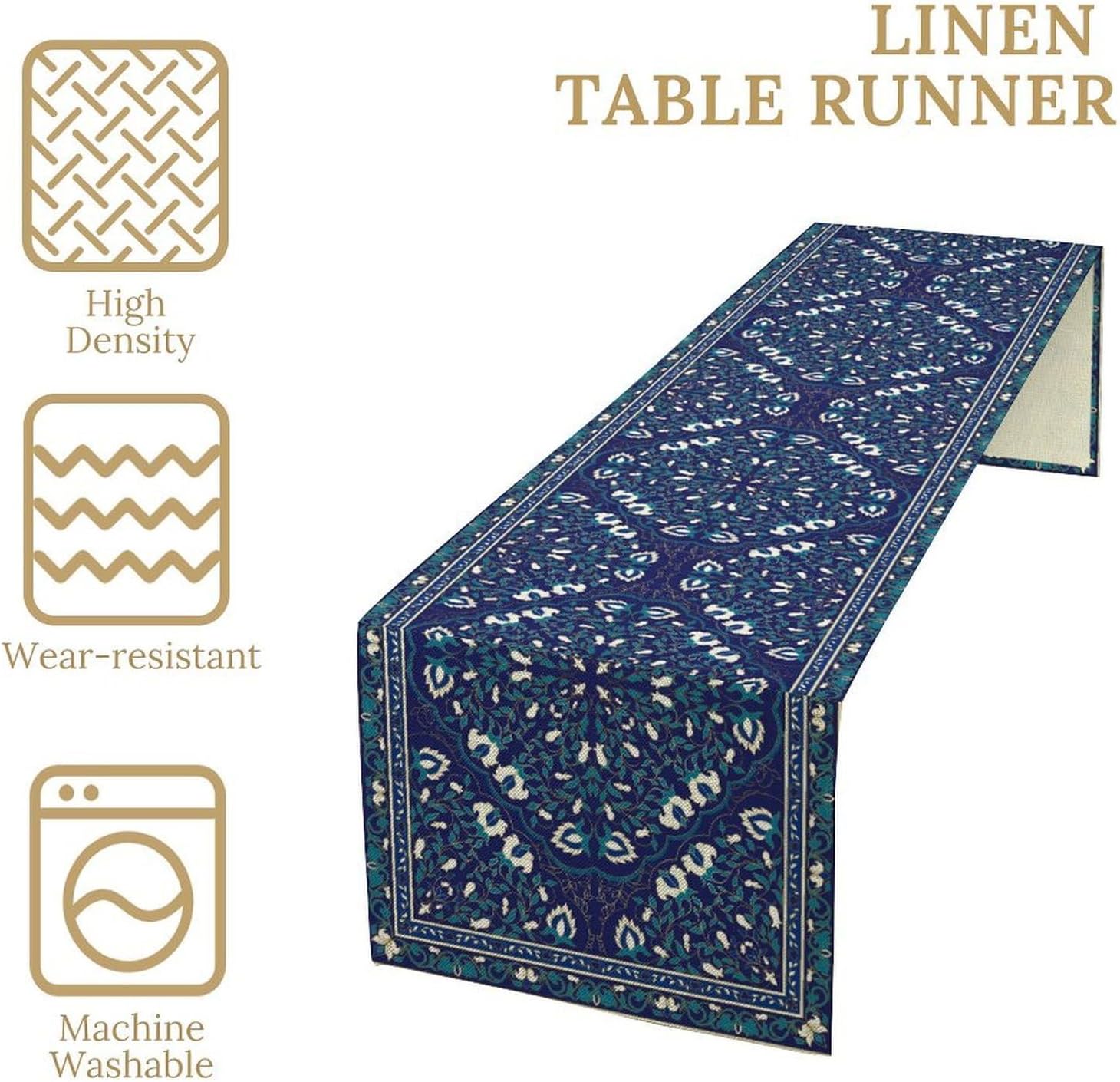 Boho Floral Vintage Table Runner, Retro Morris Abstract Blue Flower Rustic Country Farmhouse Pattern for Home Kitchen Table Decor Dining Coffee Room Wedding Party Decor 13x72in