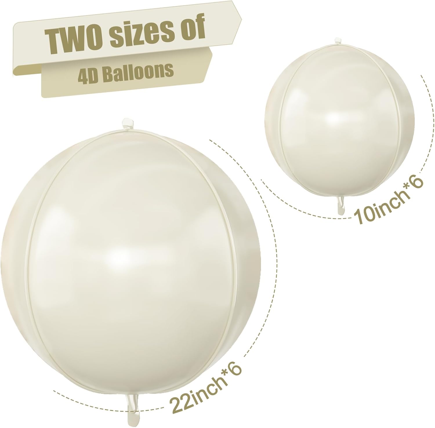 • Package: You will receive 12pcs 4D sand white round foil balloon, 6pcs 22inch + 6pcs 10inch + 1 straw + 1 roll of ribbon. Different sizes balloons in can meet your party needs. 10inch mini size balloons do not support helium filling and floating. The classic cream balloons are perfect for any beige-themed party.