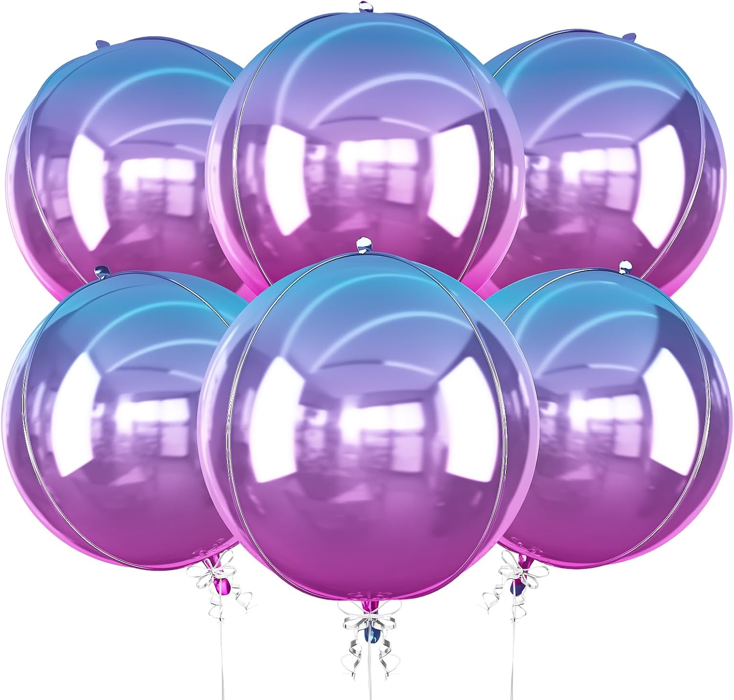 • Package: You will receive 6pcs 22inch 4D gradient purple round foil balloon, 1 straw + 1 roll of ribbon. This mylar balloons purple are perfect for your purple iridescent themed party.