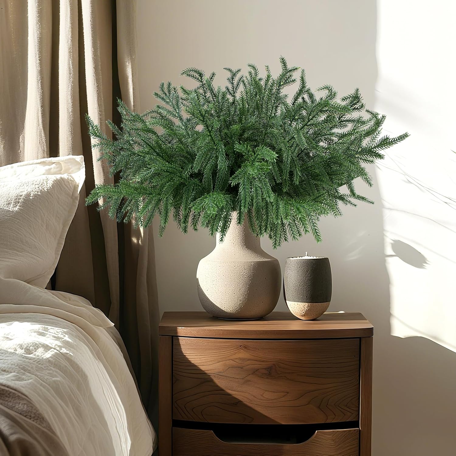 • 12Pcs Artificial Pine Branches: This set includes 12 pcs real touch Norfolk pine branches, giving you plenty for decorating. As shown, 12 branches can fill a vase for a full and lush look, and they’re also ideal for making Christmas wreaths or garlands