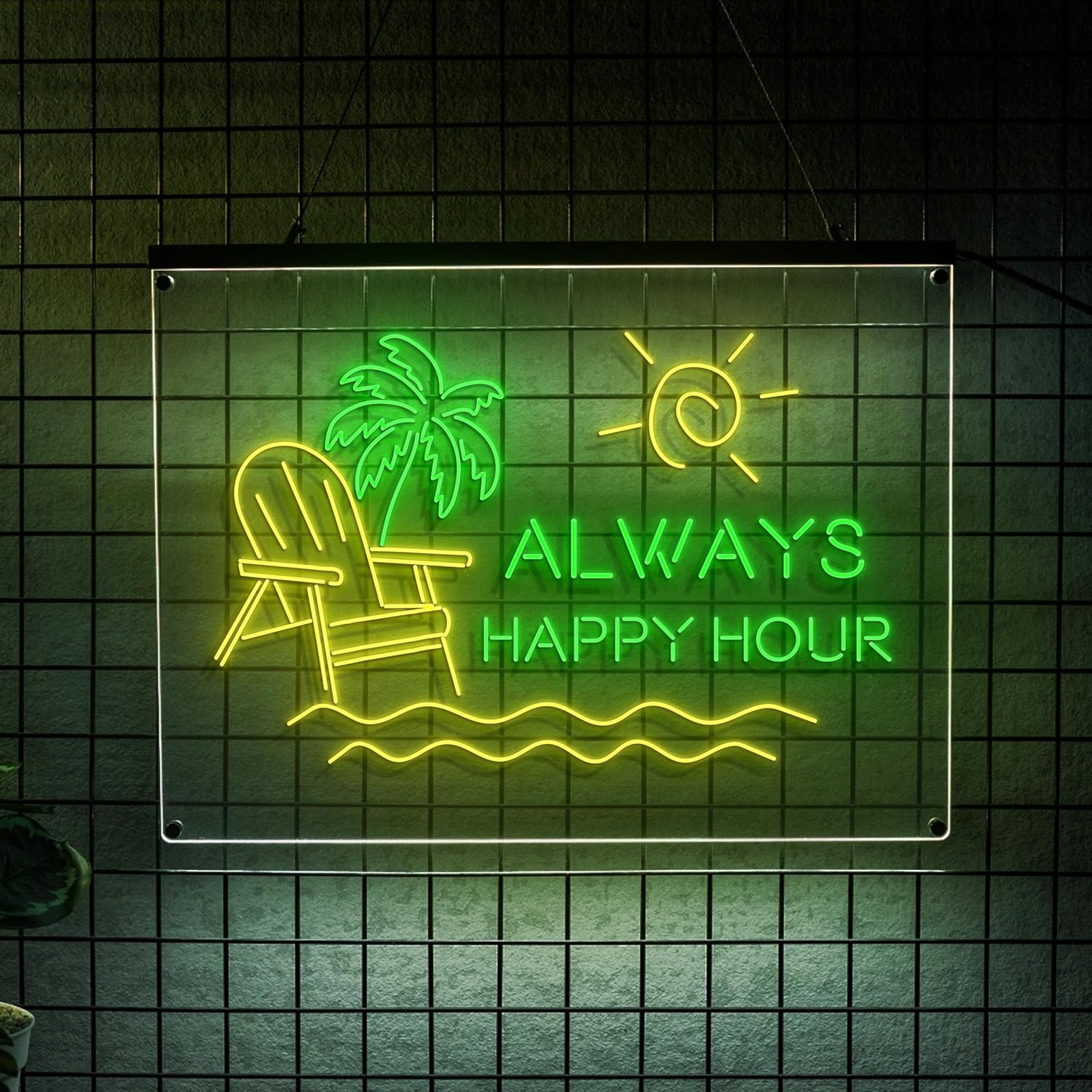 LIGHT UP LUXE Always Happy Hour Neon Sign, Bar Sign for Home Bar, Palm Tree  & Sun Wall Decor, Summer Vibes Neon Light for Patio and  Poolside