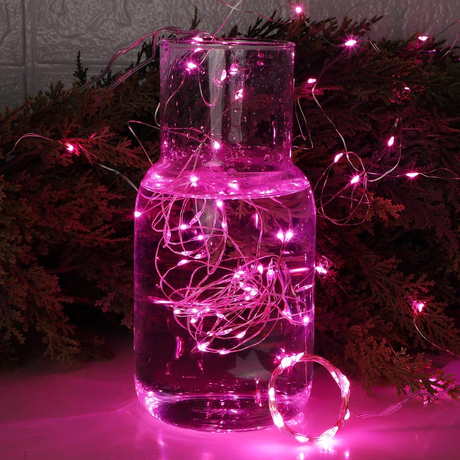 • 12 Pack Christmas Mini Fairy String Lights: Our 12 pack pink mini string lights with battery operated, made of flexible copper wire that can be easily bent and shaped easily. The durable wire and LEDs make the lights perfect for long daily use. They can make amazing costume decorations or wedding, party, holiday, concert and so on