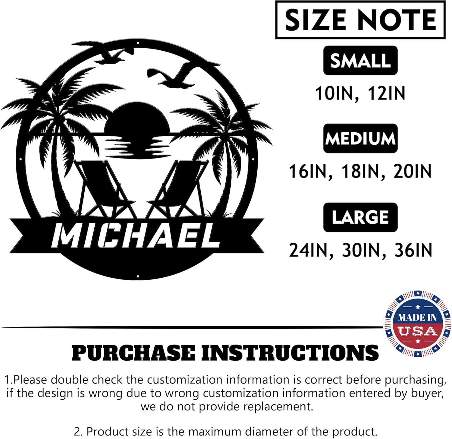 Personalized Beach Decor for Home, Custom Metal Sign Outdoor Nautical Decor, Palm Trees Coastal Wall Art, Family Last Name Sign, Housewarming Christmas Wedding Gifts