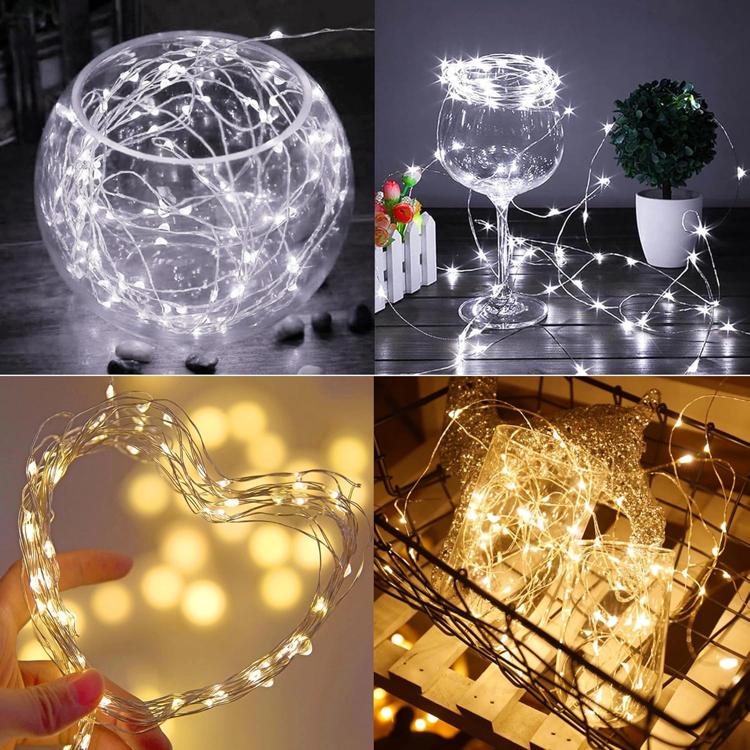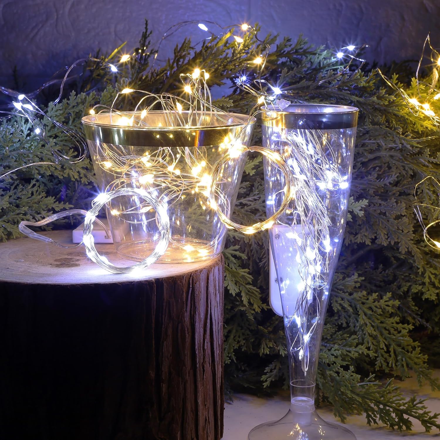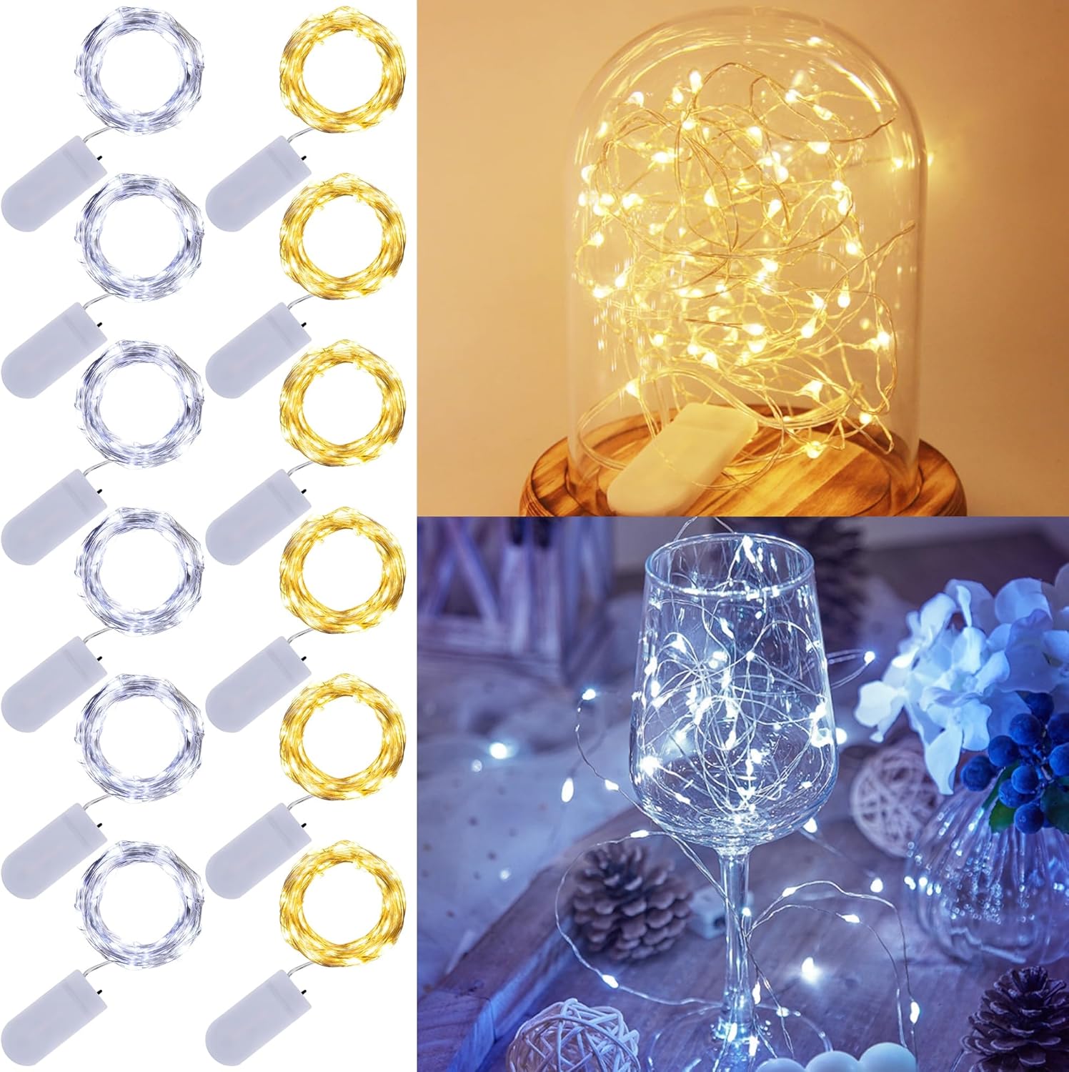 • 12 Pack Christmas Mini Fairy String Lights: Our 12 pack warm white & cool white mini string lights with battery operated, made of flexible copper wire that can be easily bent and shaped easily. The sturdy wire and LEDs make the lights perfect for long daily use. They can make amazing costume decorations or wedding, party, holiday, concert and so on