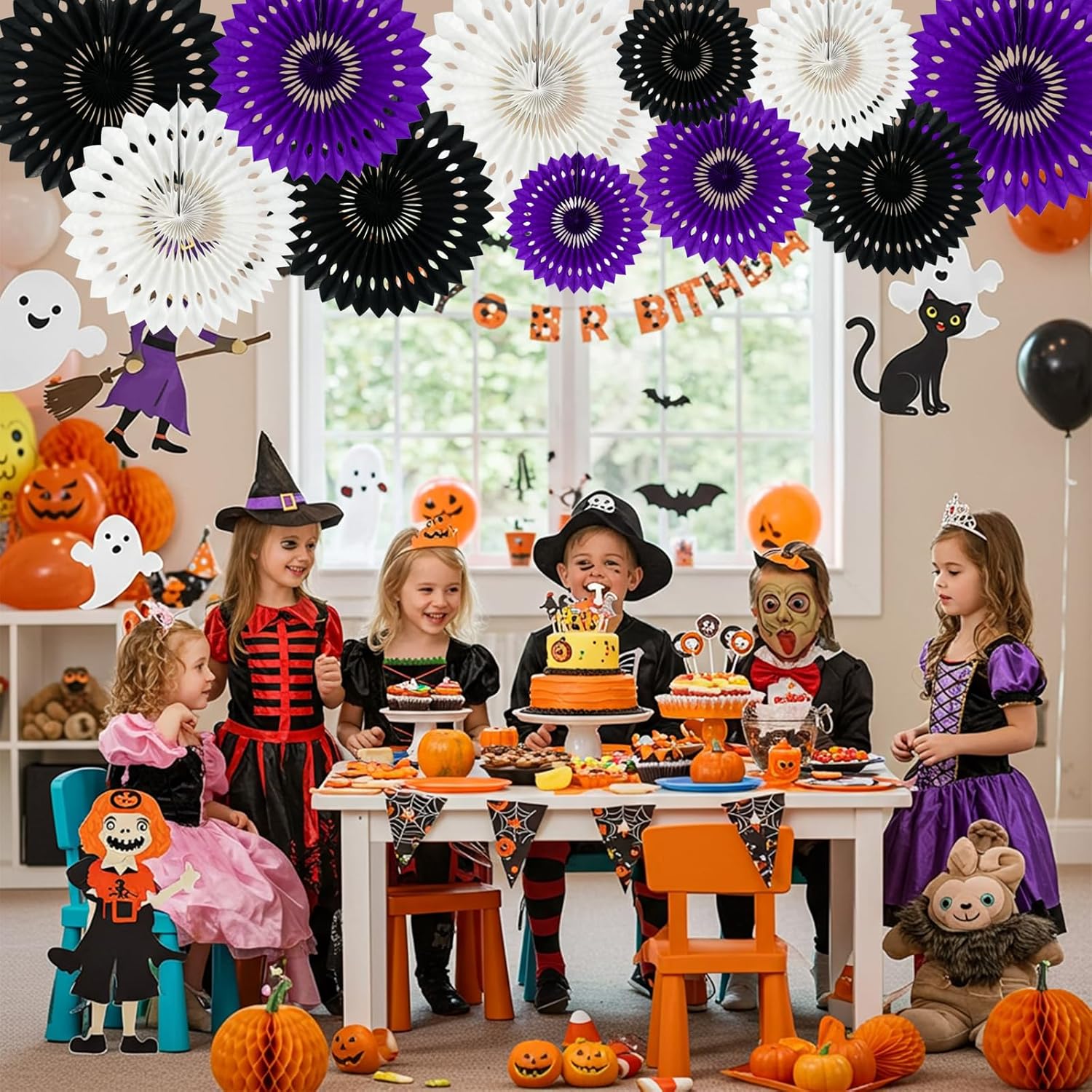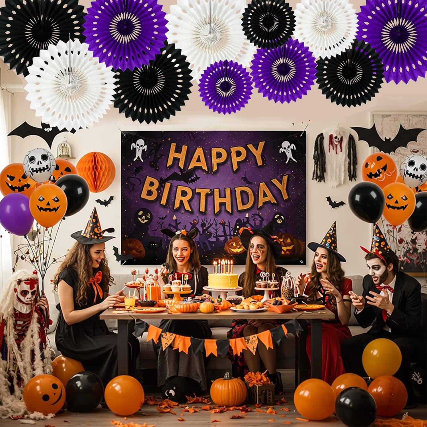 BEISHIDA Black Purple White Hanging Honeycomb Round Paper Fans Decoration Set for New Year Baby Shower Halloween Birthday Wedding Photo Booth Backdrops Anniversary Paper Party Supplies 11packs