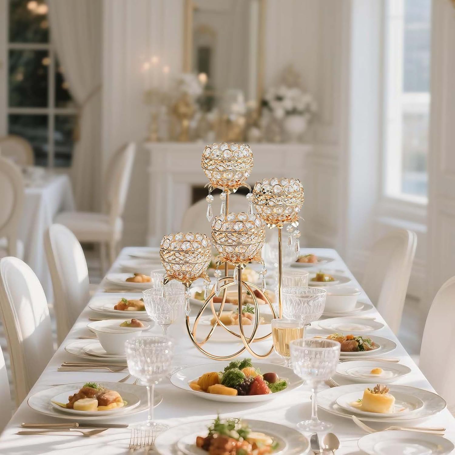 • Instant Luxury for Every Occasion:Elevate weddings, holiday gatherings (Christmas/Easter), formal dining tables, or everyday home decor with versatile sophistication – the gold-and-crystal aesthetic complements modern farmhouse, vintage, and glam interiors effortlessly.