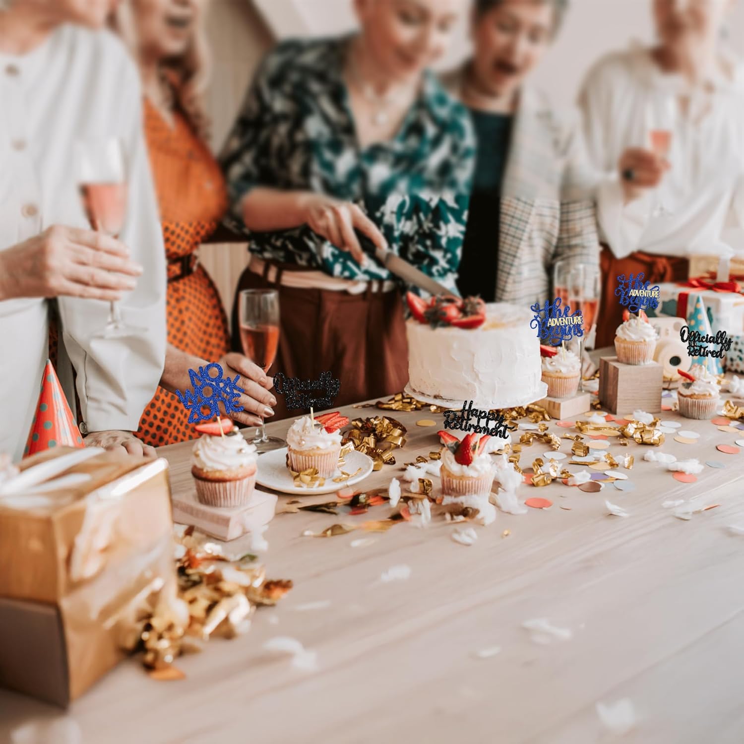 24Pcs Happy Retirement Cupcake Toppers Officially Retired Cake Toppers No Work Zone Adventure Begins Cupcake Picks Retirement Theme Farewell Birthday Party Decorations Supplies Black Blue
