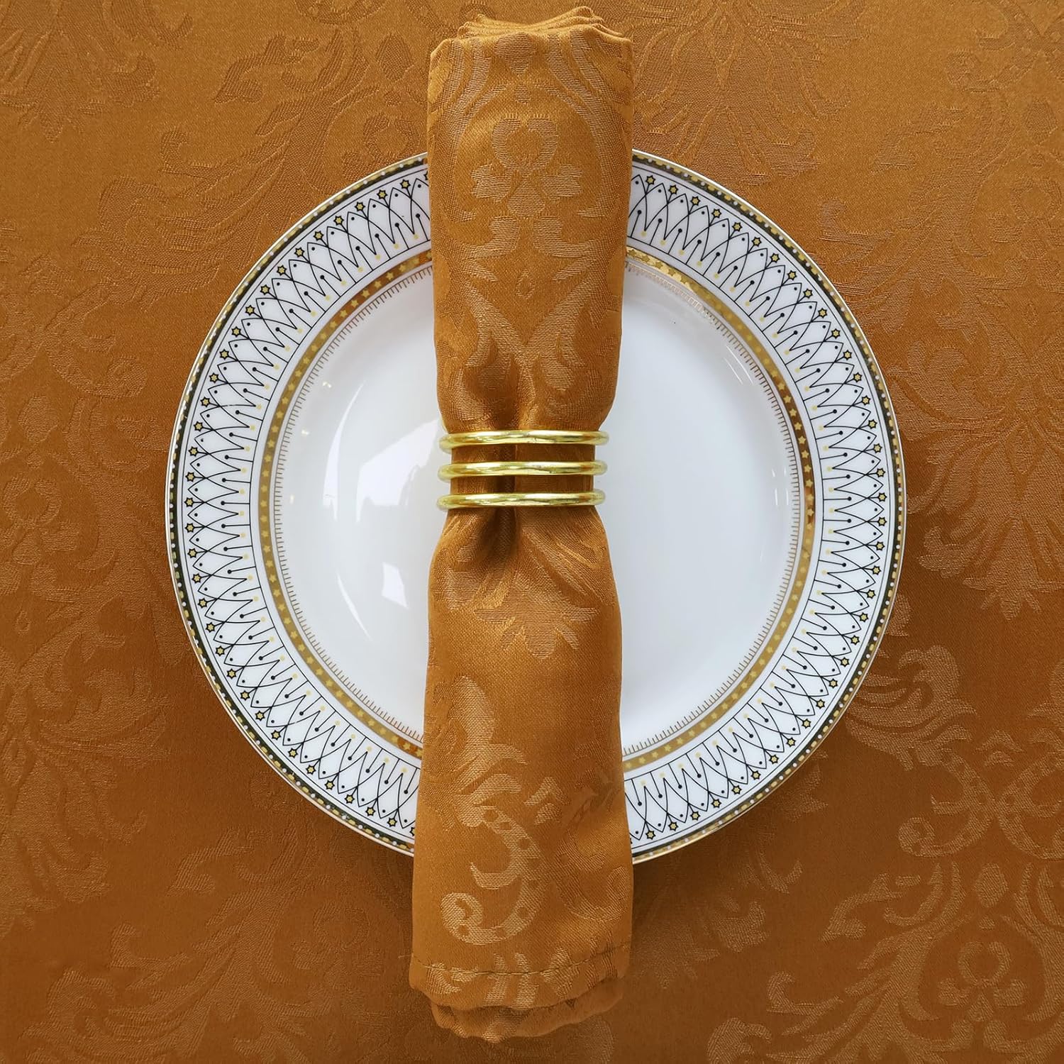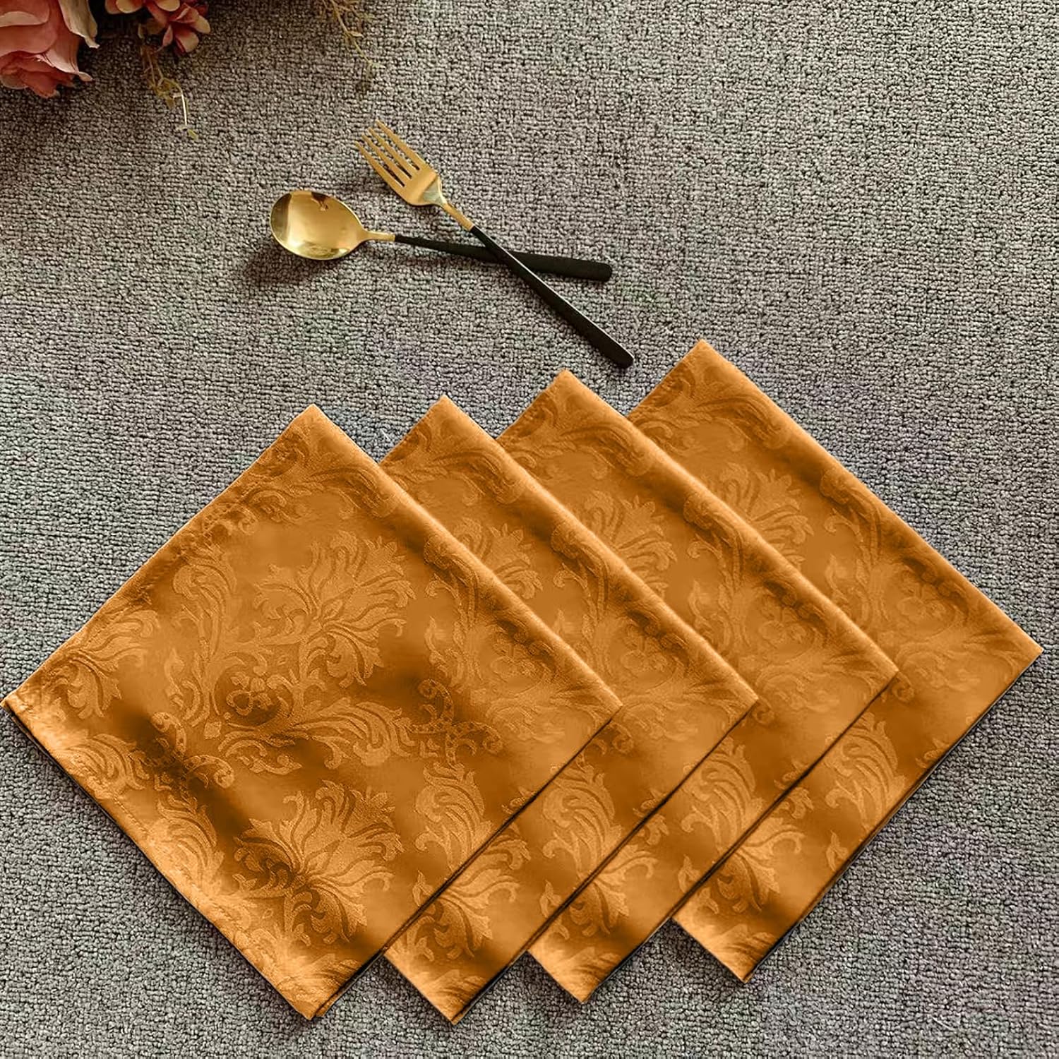 SASTYBALE Brown Jacquard Square Napkin, 20x20 Inche Damask Wrinkle Resistant Soft Polyester Napkins, Fabric Cloth Dinner Napkins for Wedding, Winter, Holiday, Xmas, Parties, Set of 4 (Brown)