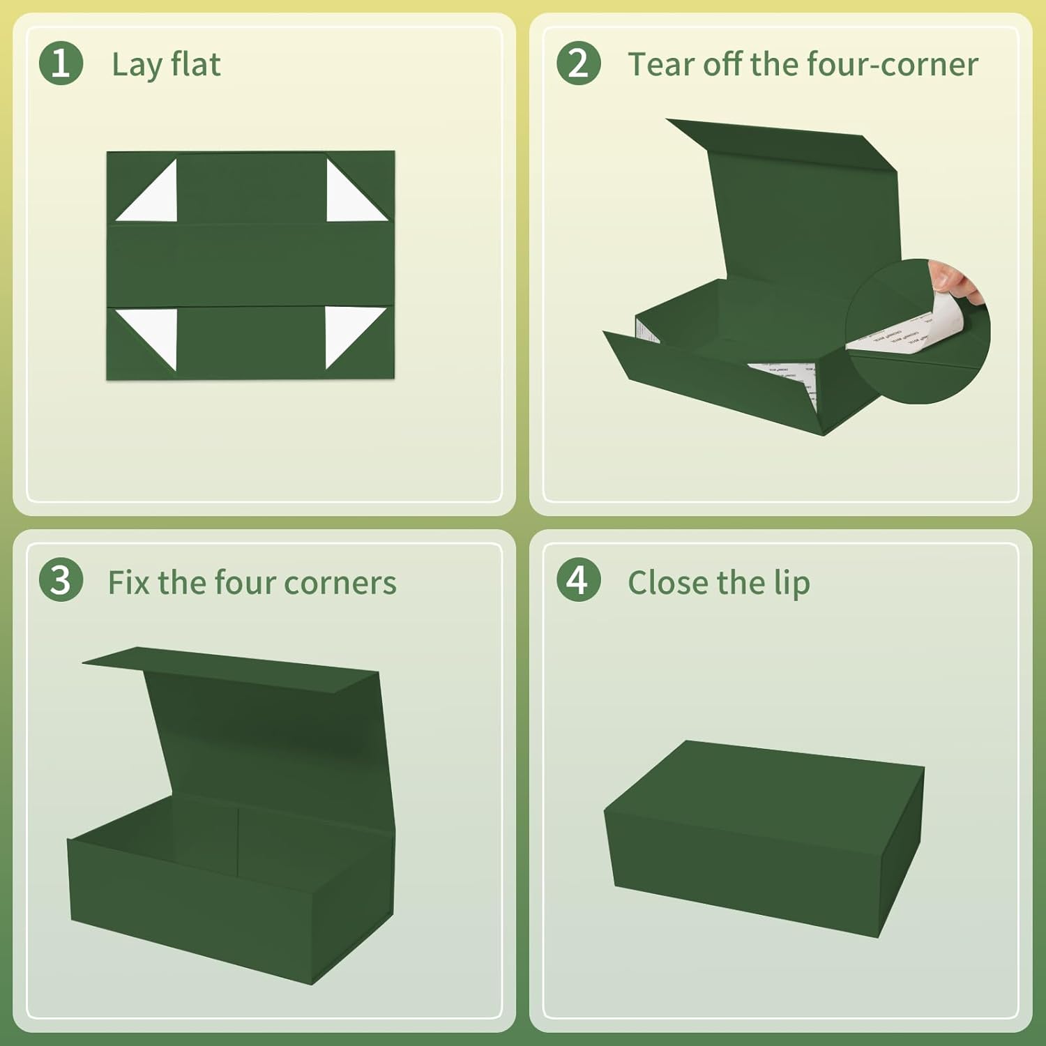 • FRIENDLY DESIGN: This green gift box has a sturdy magnetic closure that can be easily opened and closed again and again. The surface of the box is printed with special texture and elegant shape.