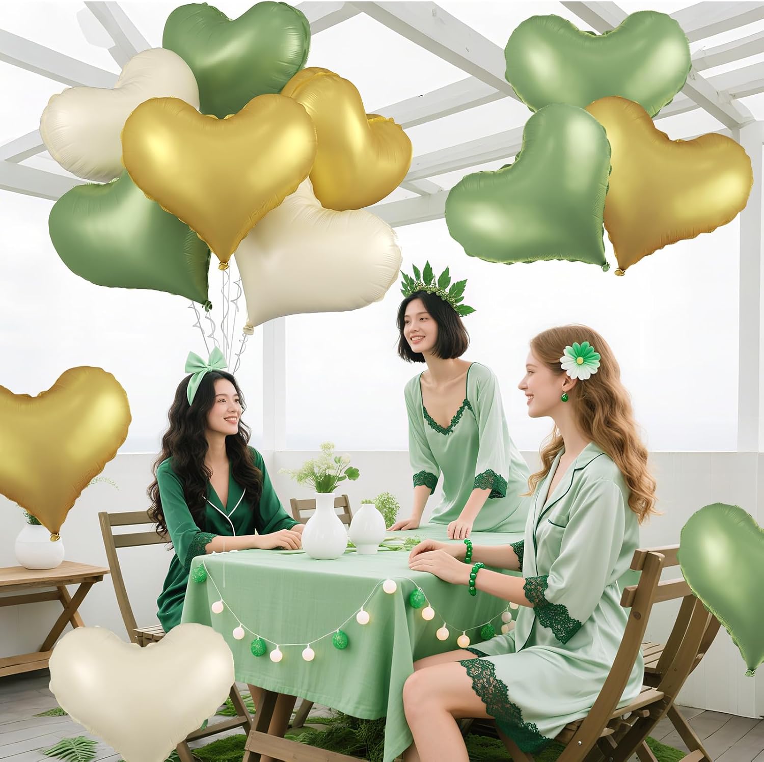 • Package: This set includes 6pcs of 24inch heart foil balloons(olive green*2,cream white*2,gold*2),1 ribbon,and 1 straw.The generous size makes these balloons perfect for transforming any space into a festive celebration venue, whether you're decorating for a wedding arch, photo backdrop, or party centerpiece.