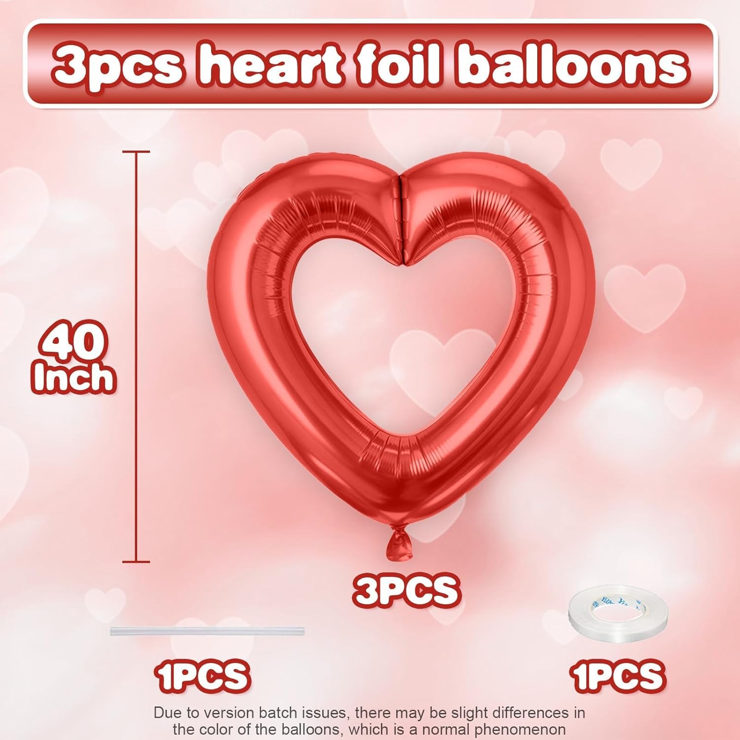 • Package: This set includes 3pcs of 40inch red hollow out heart foil balloons,1 ribbon,and 1 straw.The generous size makes these balloons perfect for transforming any space into a festive celebration venue, whether you're decorating for a wedding arch, photo backdrop, or party centerpiece.