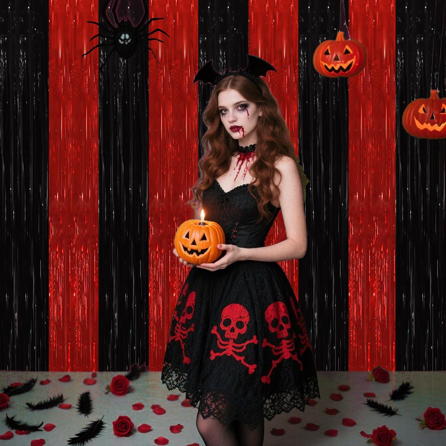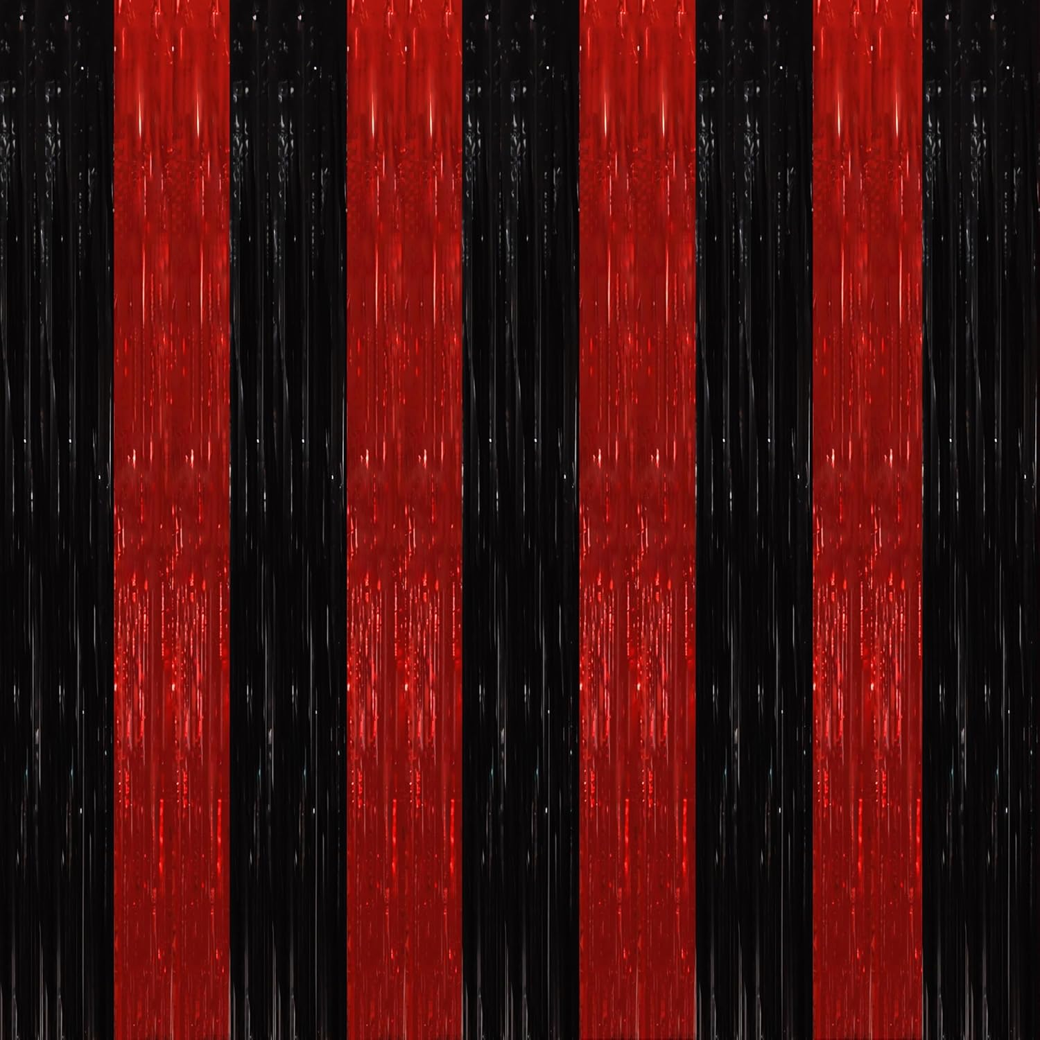 TONIFUL 2Pcs Black Red Door Streamers,Green Photo Booth Backdrop,Metallic Streamers Green Foil Fringe Curtains for Birthday,Christmas,New Year,Halloween,St. Patrick's Day Party Streamers Decor