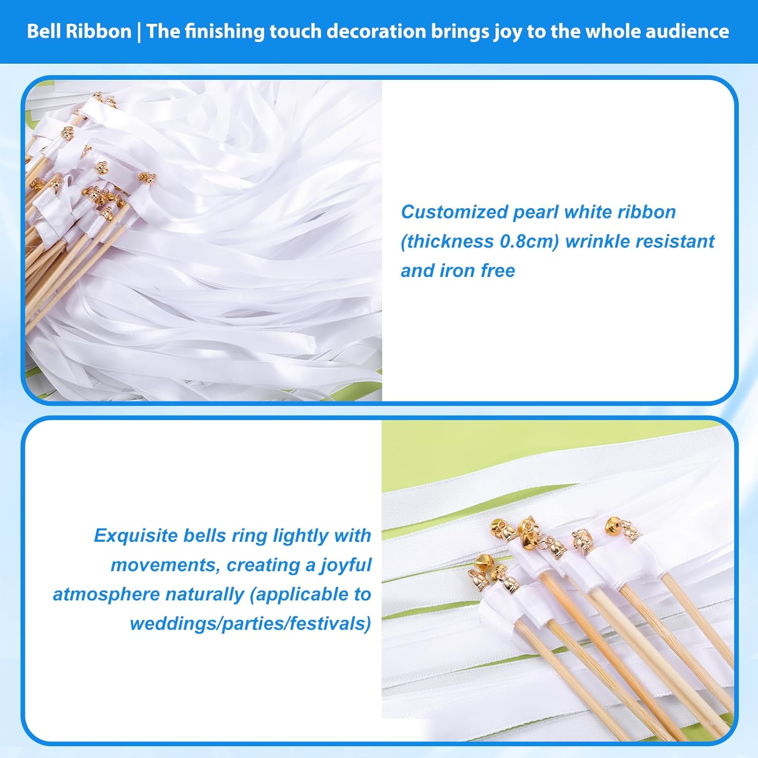 • 【Complete Set】This package includes 100 white ribbon wedding wand with bells, providing ample quantity for large gatherings. The comprehensive set allows for easy distribution among guests, ensuring everyone can join in the celebration.