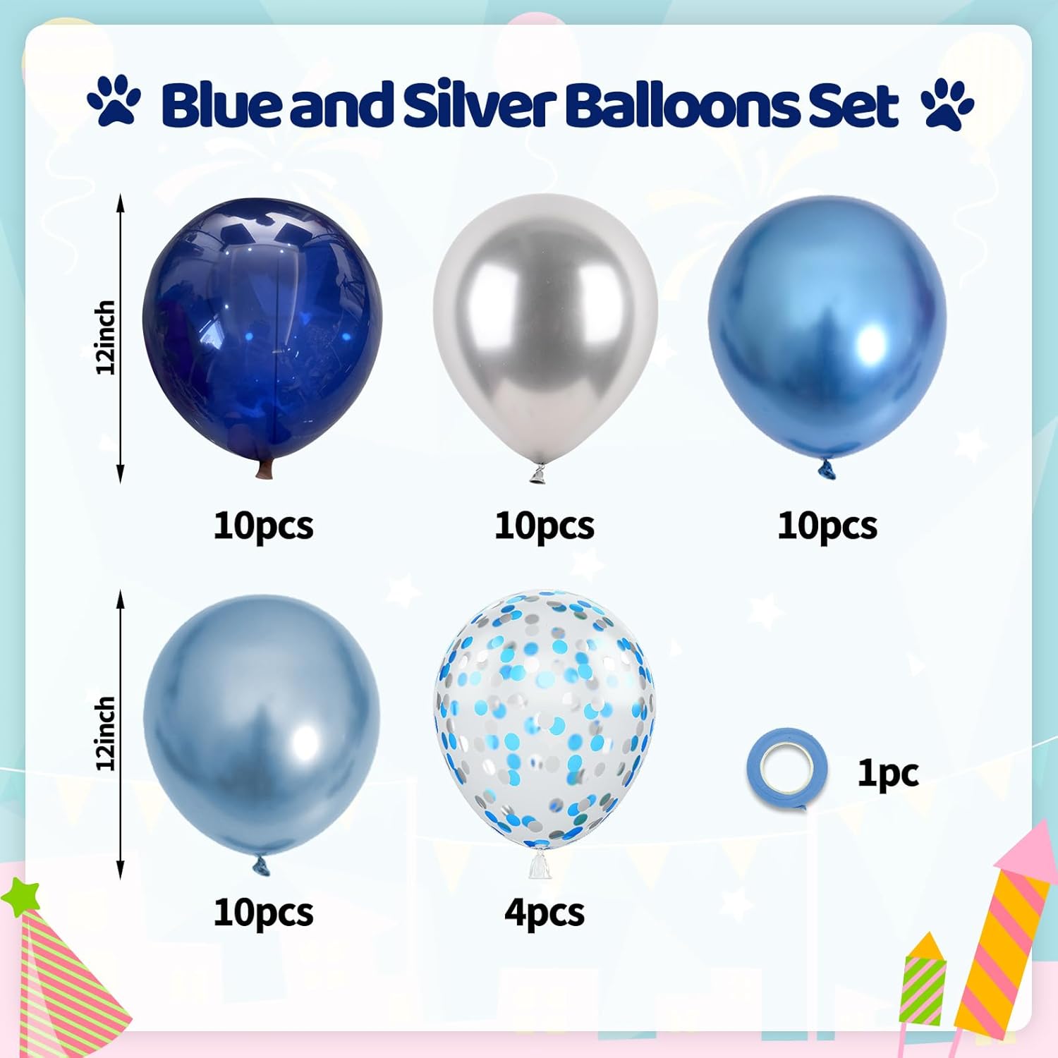 Paready Blue Silver Balloons, 50PCS Navy Royal Blue Balloons, 12 Inch Confetti Balloon Metallic Silver Party Balloon for Boys Men Baby Shower Graduation Wedding Retirement Birthday Party Decorations