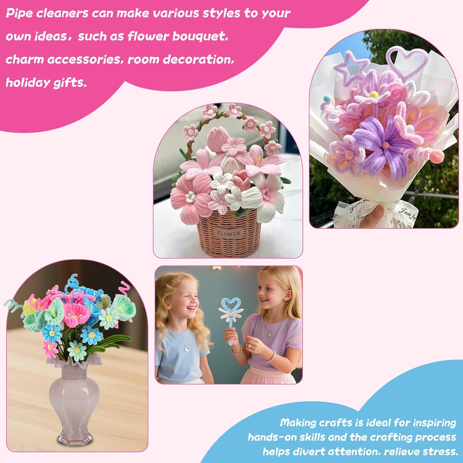 • 【Pipe Cleaners Craft Kit】 Crafted from eco-friendly, non-toxic, and odor-free materials,they are easily bendable allowing you to twist and twine them into many shapes you fancy,you can handmade with Children,handmade gifts for friends,handmade bouquet in classroom.