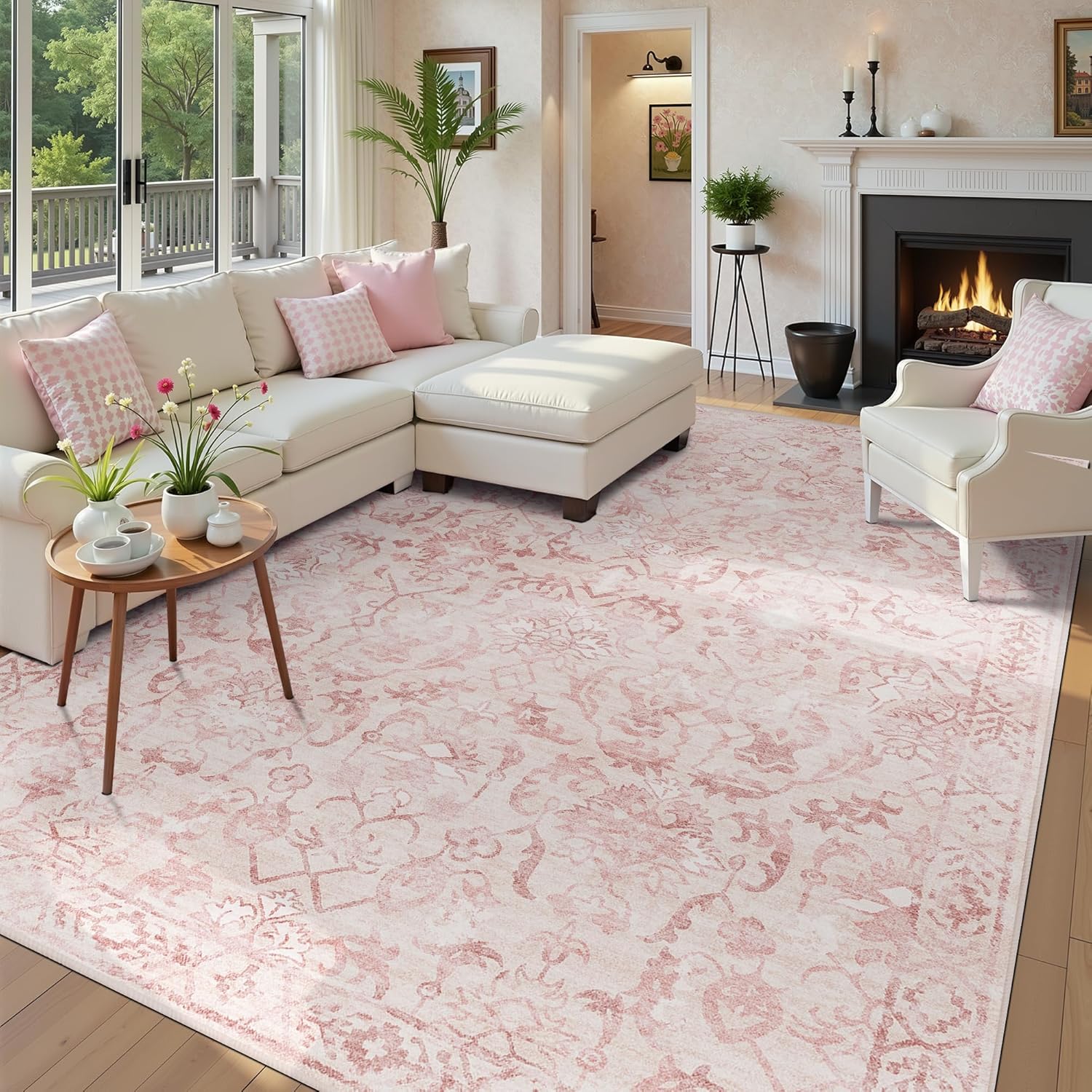 • Deerly Vintage 7x9 Rugs for Living Room: This area rug features trendy faded style and unique neutral distressed floral pattern, vintage tones combines the pink and ivory color, creating a comfortable and warm family environment. Dorm carpets are suitable for living room, bedroom, dining room, office, etc.