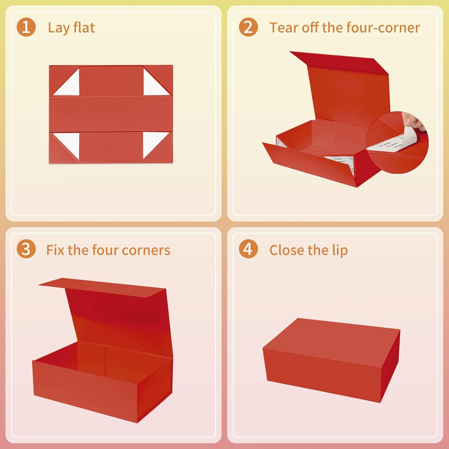 • EASY TO ASSEMBLE: For easy transportation,the gift box is designed to be folded. Unpack the package,tear off the white triangle sticker,paste and assemble the box.