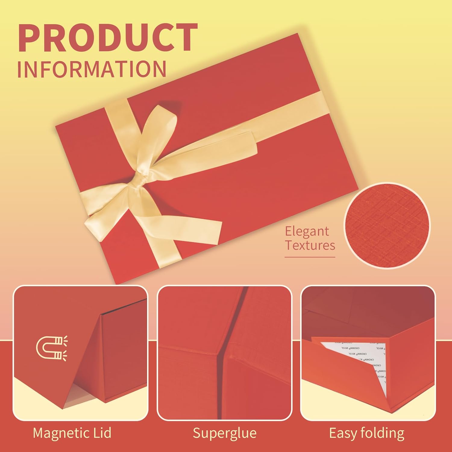 • FRIENDLY DESIGN: This red gift box has a sturdy magnetic closure that can be easily opened and closed again and again. The surface of the box is printed with special texture and elegant shape.