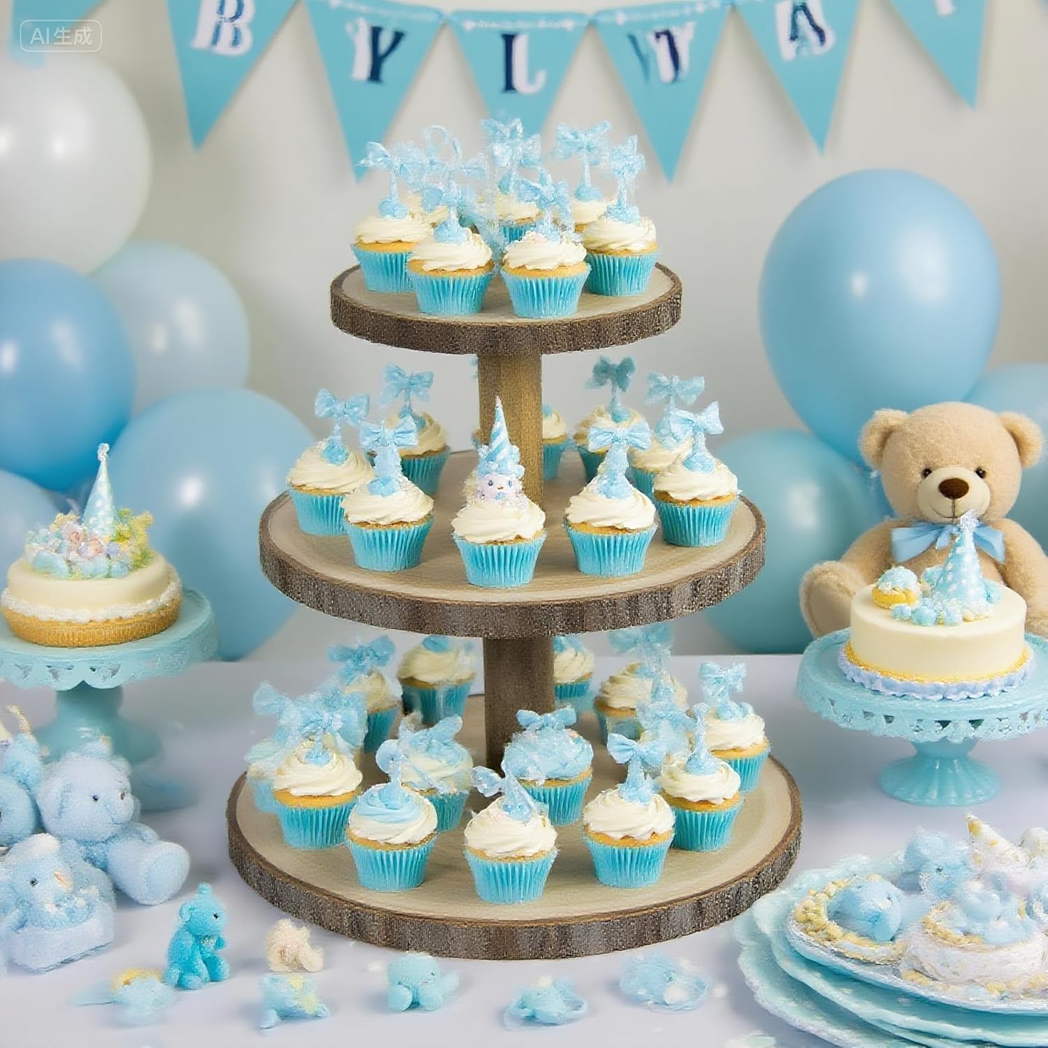 • Easy Assembly & Durable Construction: The tiered cupcake stand is lightweight yet sturdy, featuring a simple setup and a classic wooden finish that blends seamlessly with various decor styles.