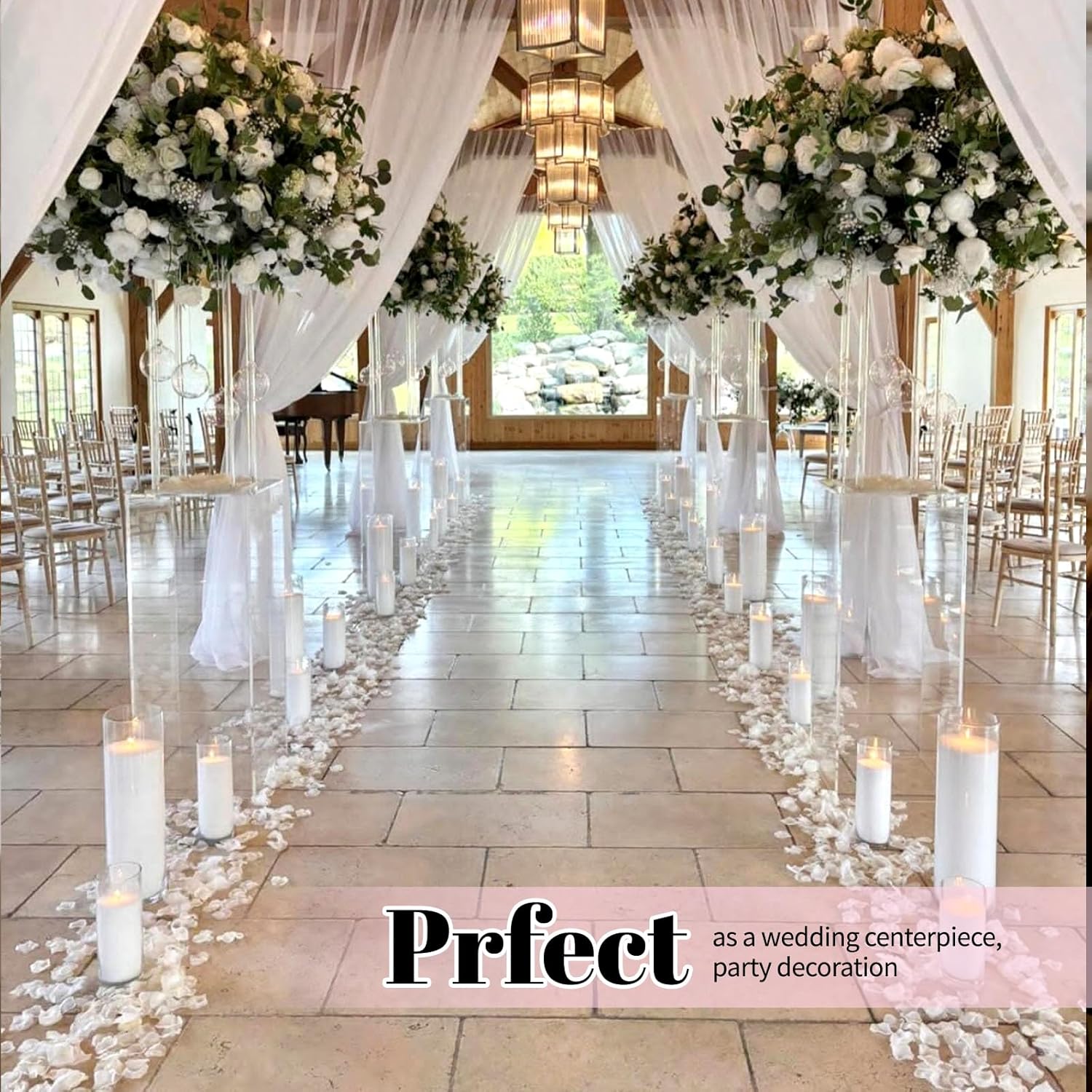 • ✅ Premium High-borosilicate Glass: Crafted from food-grade, heat-resistant borosilicate glass, our vases for centerpieces ensures exceptional clarity and durability. Designed with a solid base and smooth, polished rim, this flower vase provides stability and safety during use. This sturdy material can withstand greater temperature changes than regular glass. Perfect for use as a hurricane floating candle holder or for pillar candle holder.