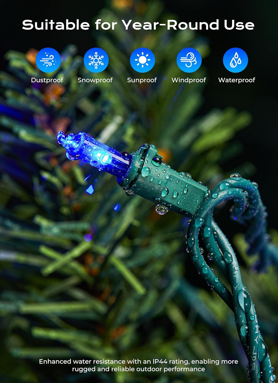 • [Safe to Use] Xmas Lights are made of great material and superb craftsmanship, built in fuses, universal UL listed certification,. Christmas tree lights have built-in fuses, which will protect the short circuit caused by the damaged wire and can effectively prevent the possibility of fire. Warm tips: Please kindly protect these string lights from immersing in water and keep the plug dry