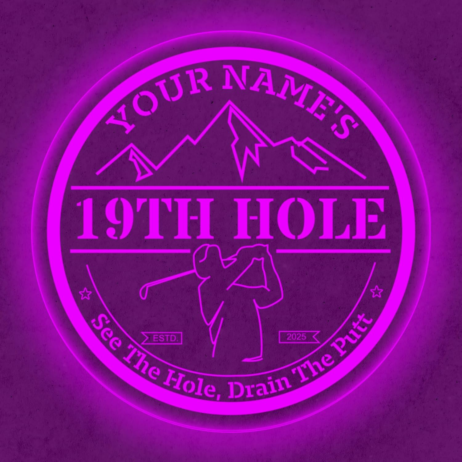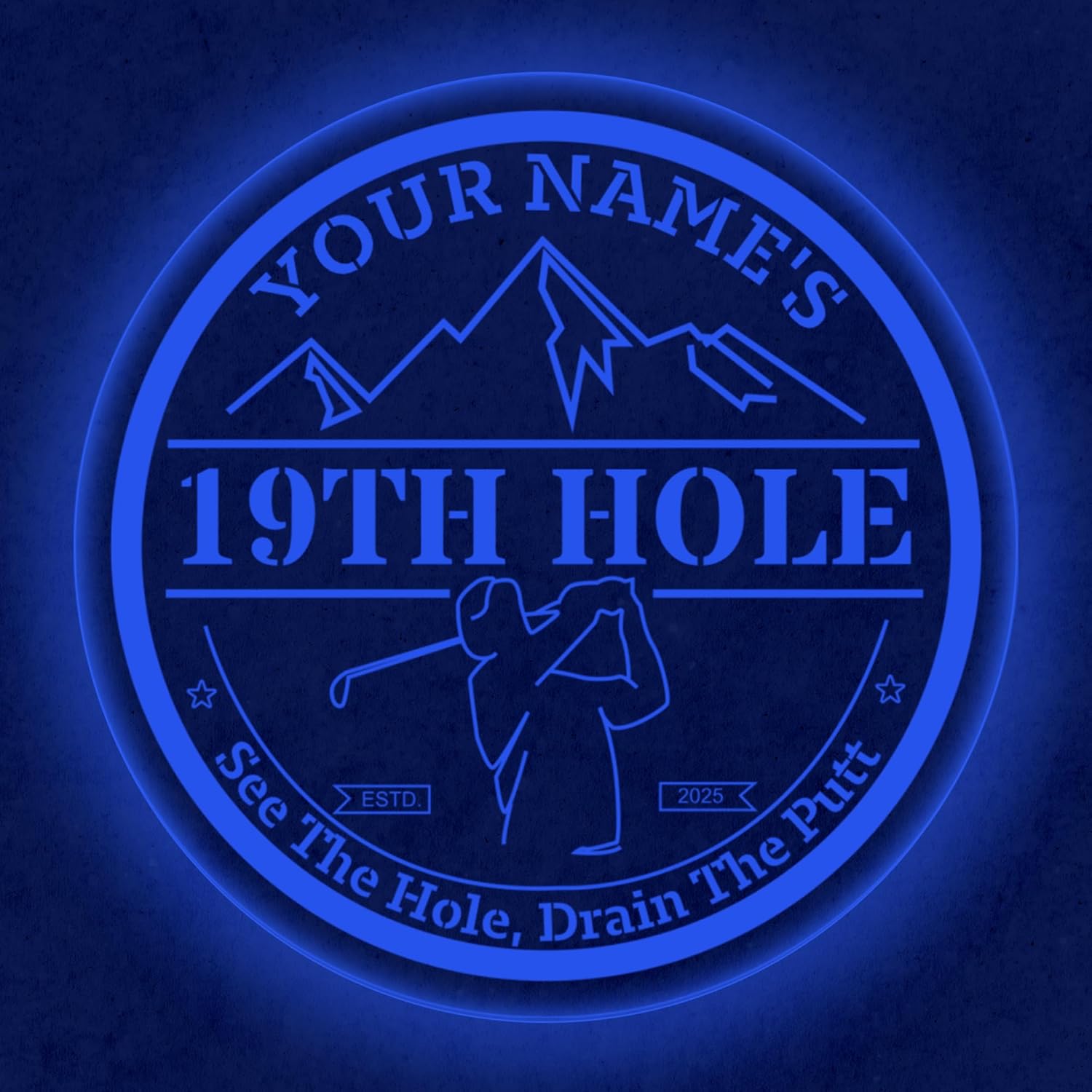 Custom 19th Hole Golf Bar Sign – Personalized LED Color Changing Acrylic Wall Decor for Home Bar, Man Cave, or Patio (19th Hole, 20 INCHES)