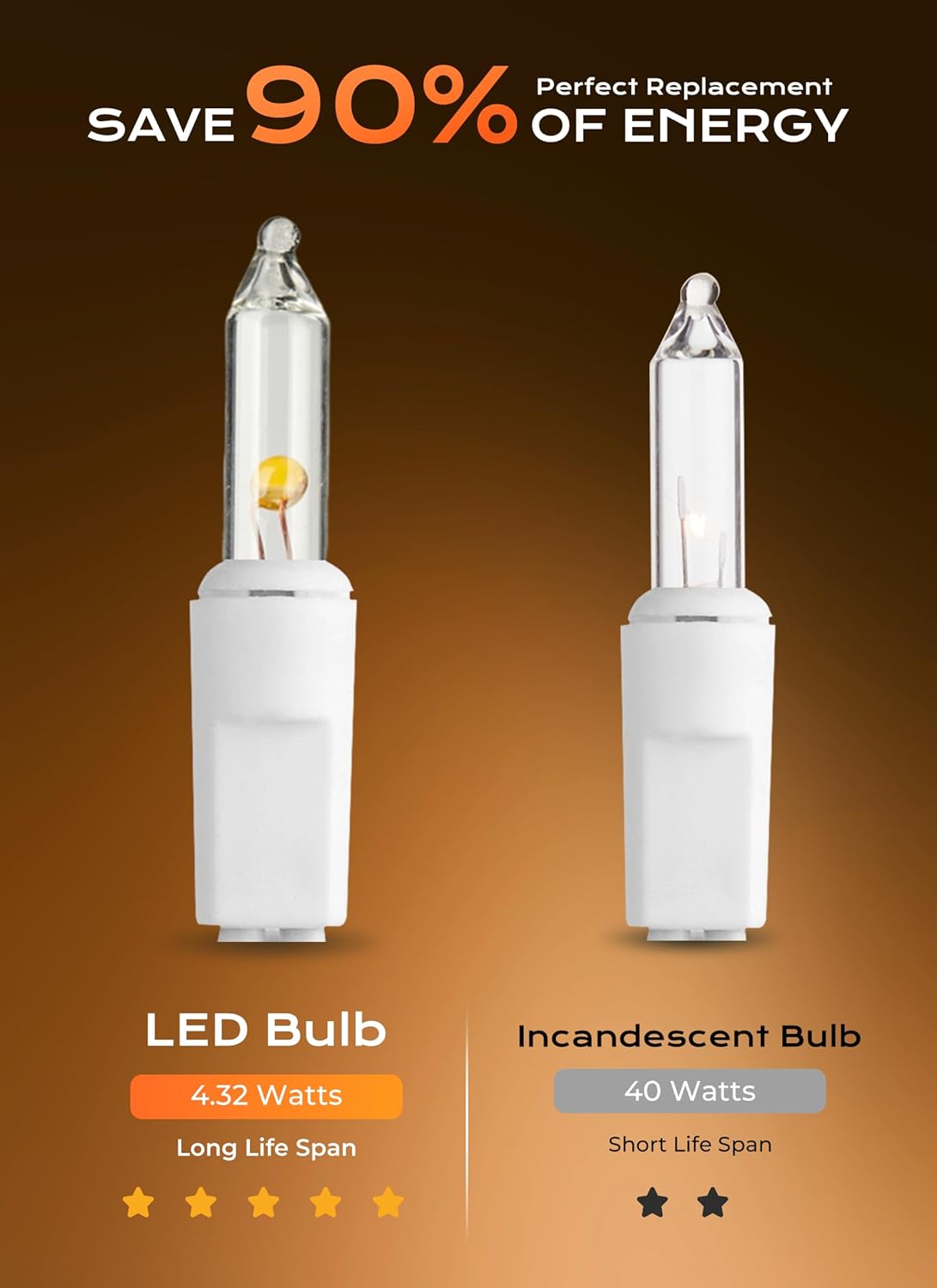 • [Mini Christmas Lights Set] Christmas lights on white wire set includes 200 count transparent LED mini-lights, 66 feet white wires, and each bulb is 4 inches apart, 24 inches lead wire, 4 inches end connector. Christmas String light sets come with 2 spare fuses and 2 spare bulbs for easy replacement. This mini Christmas light can be connected end to end and can be extended to a longer connection length, making it be suitable for different decoration needs