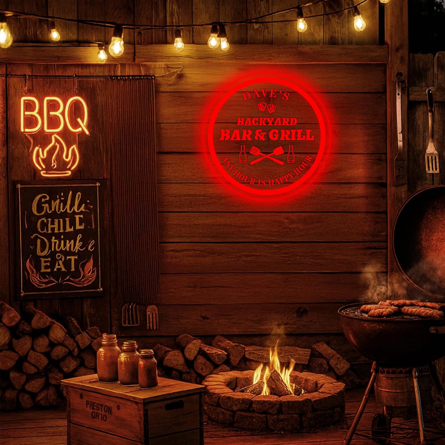 Custom Acrylic LED Bar Sign – Personalized Color Changing Wall Decor for Backyard Patio, Home Bar, Kitchen, or Man Cave (Bar & Grill, 20 INCHES)