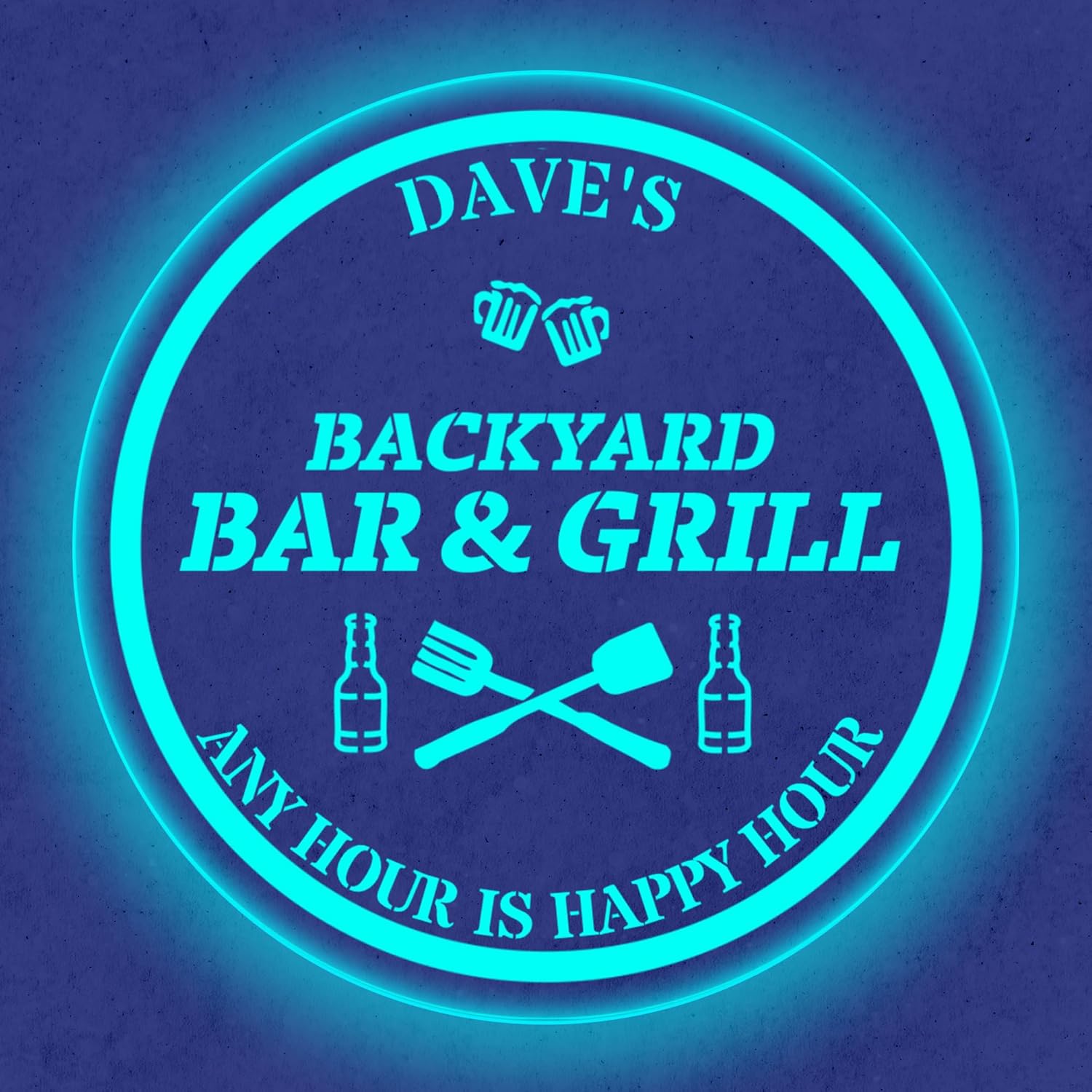 • Custom Acrylic Sign with LED Lights: Personalize this clear laser engraved acrylic sign with a name or phrase and enjoy vibrant color changing LEDs that match your backyard bar, patio, or man cave vibe; comes with a remote for easy control of colors and lighting modes