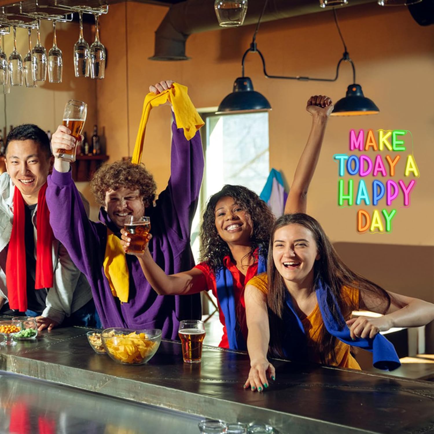 Make Today a Happy Day Neon Sign,Dimmable Positive Quote Neon Light Inspirational Letter LED Light for Wedding School Office(11.81 * 14.57In)