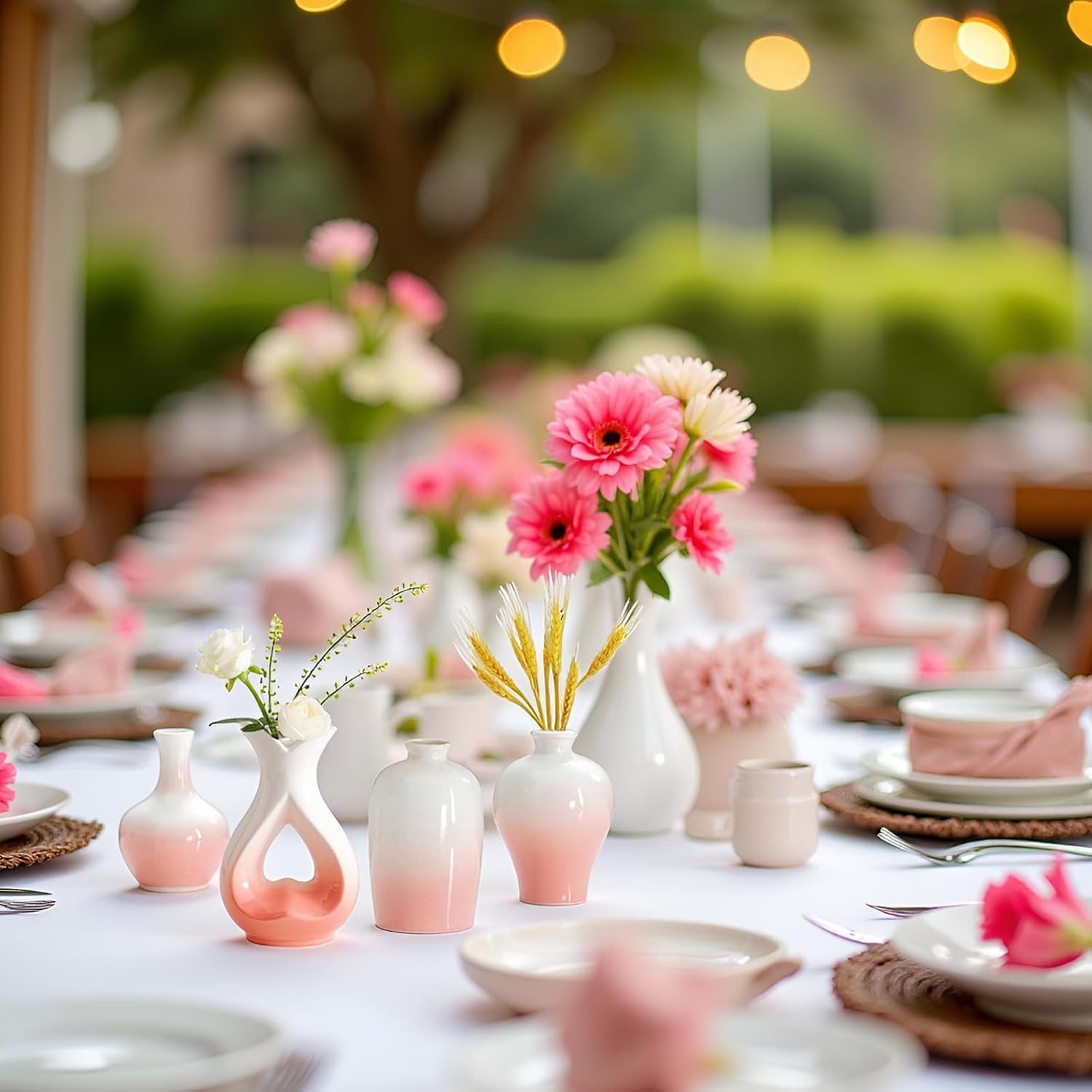 • Elegant 4-Piece Set - Four 6-inch matte ceramic vases in blush pink & creamy white, perfect for creating cohesive home decor or table centerpieces. The vases for centerpieces bulk are not only fit for own use, but also fit for anniversaries, mother's day, thanksgiving, housewarming, anniversaries, weddings, birthdays or housewarming, 16th birthdays, baby showers, family gatherings and other parties as gifts, give friend or family member as a gift for a compliment.
